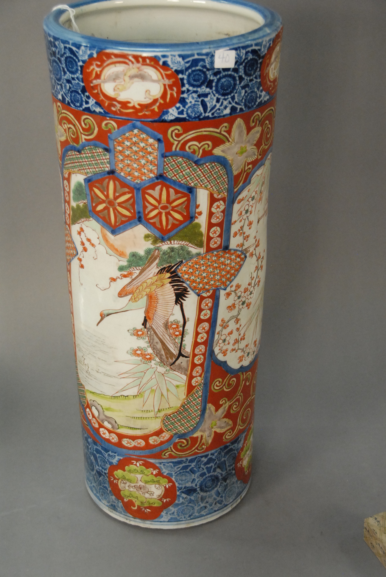 Imari Umbrella Stand, Japan, 19th/20th century, decorated with geese. ht. 24in.