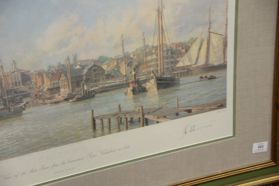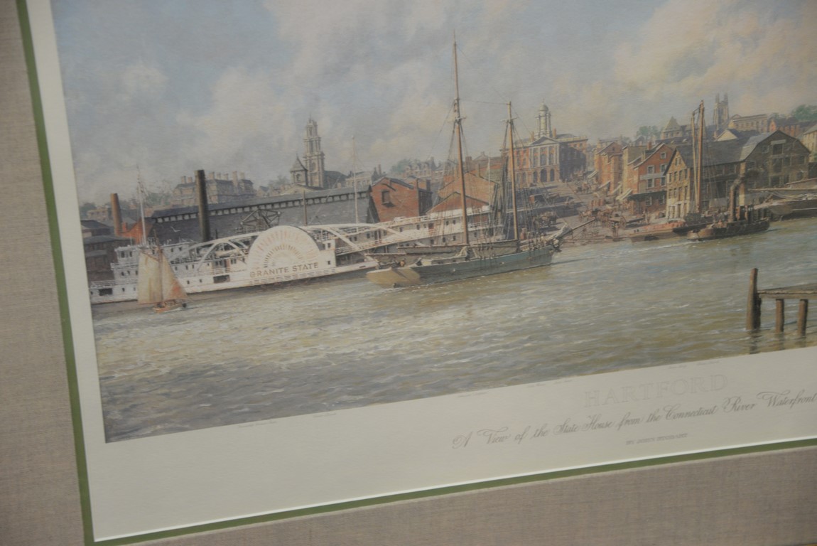 Lot 582: John Stobart Hartford print view of the State House from the Connecticut River Water front in 1876 pencil signed lower r…