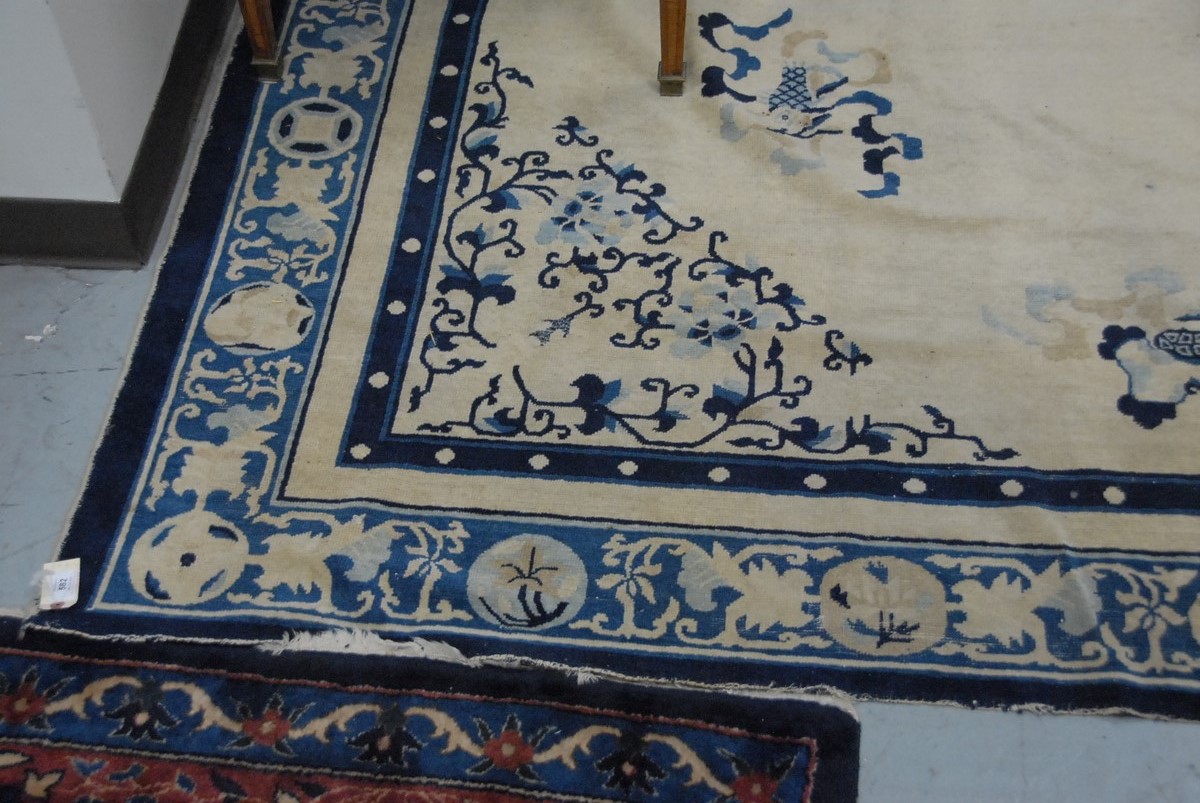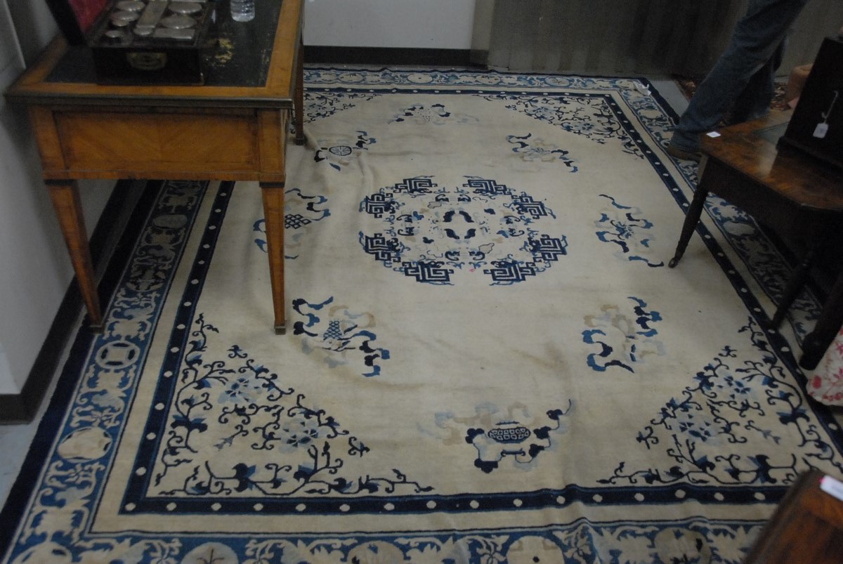 Lot 582: Peking Chinese Oriental carpet some wear. 7’10 x 9’4