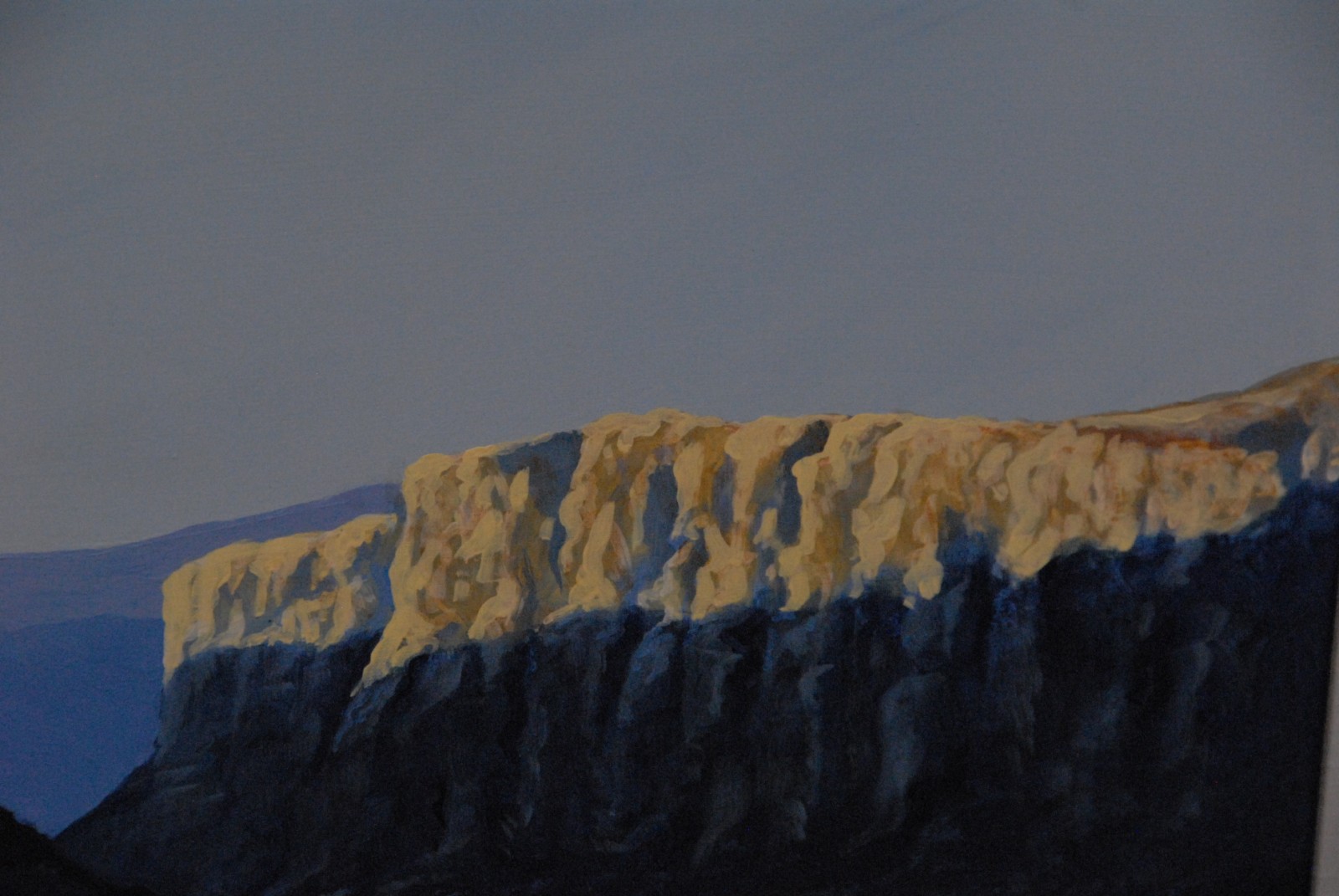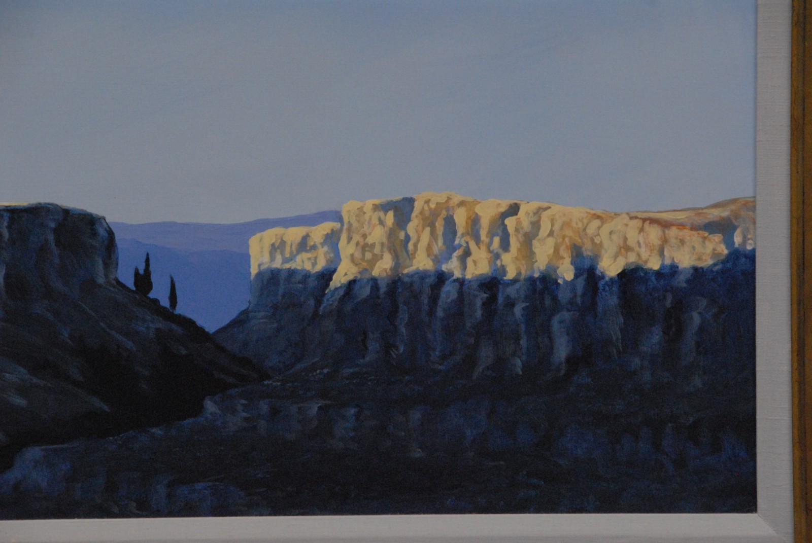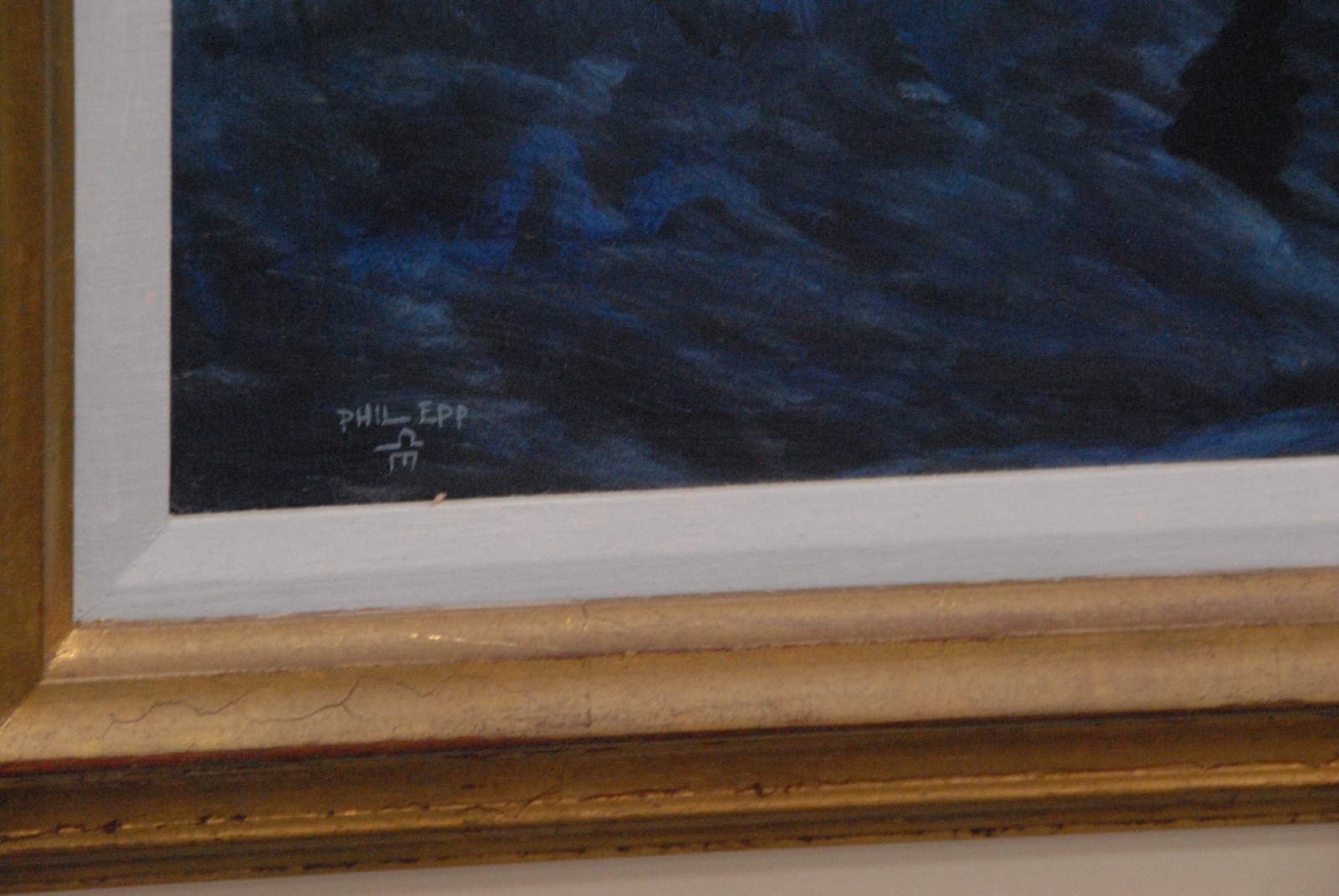 Phil Epp 1946 – LANDSCAPE DESERT CANYON MOON oil on board signed lower left Phil Epp.