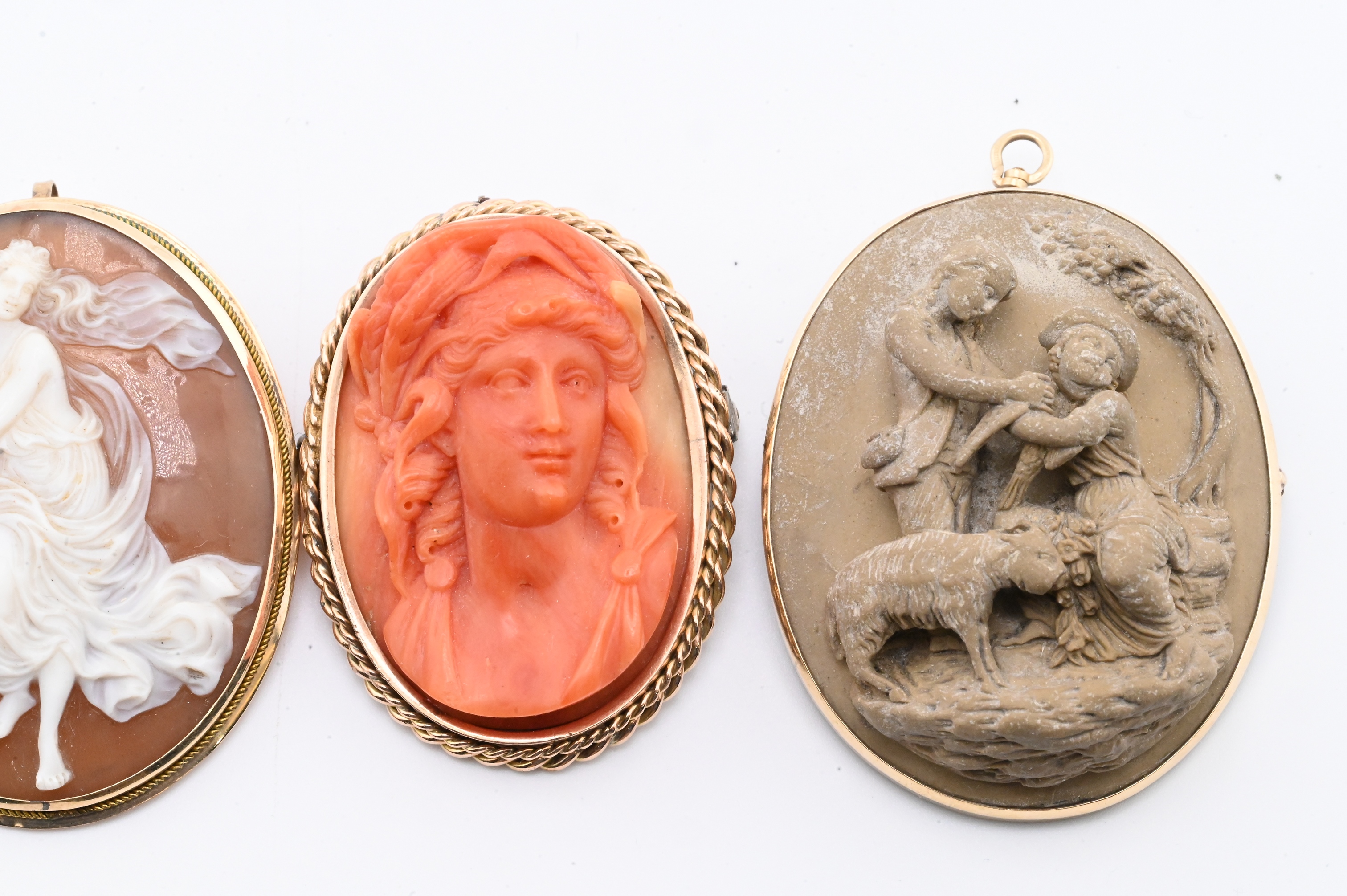 Lot 582: Three 14K Yellow Gold Cameos