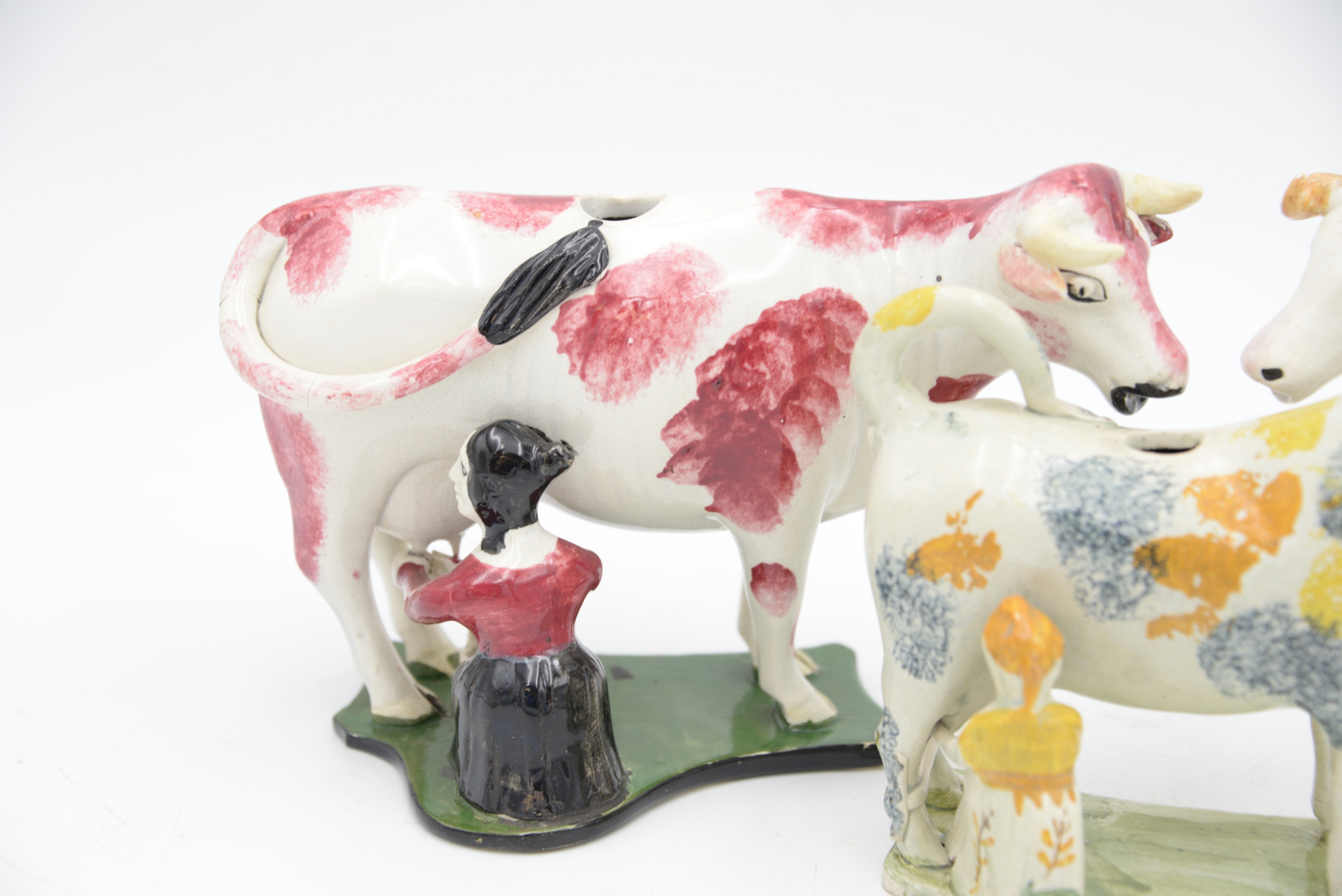 Lot 582: Three Piece Grouping of English Staffordshire Pearlware Cow Creamers