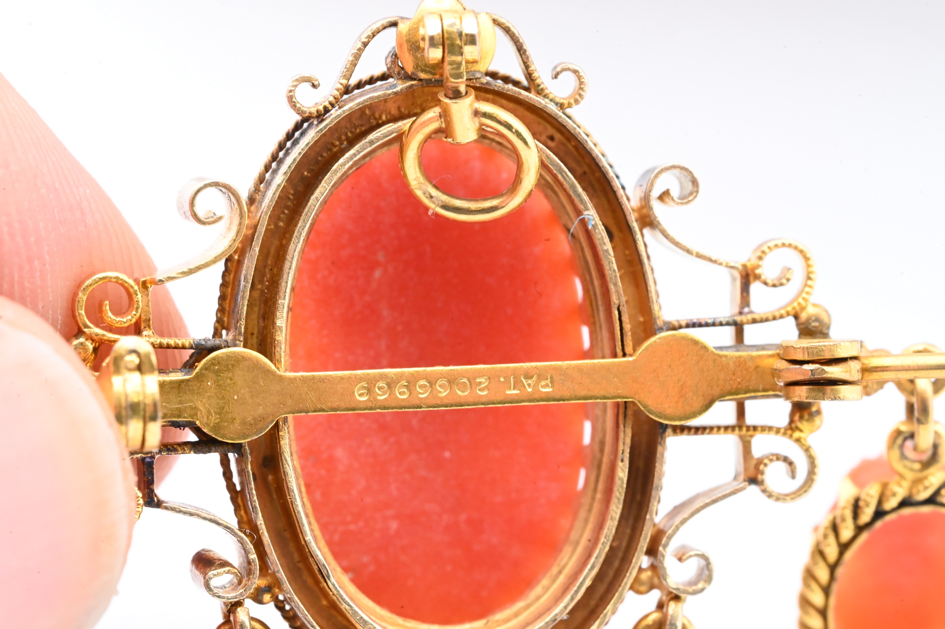 Lot 583: 3 Piece Victorian 14K Gold and Coral Cameo Set