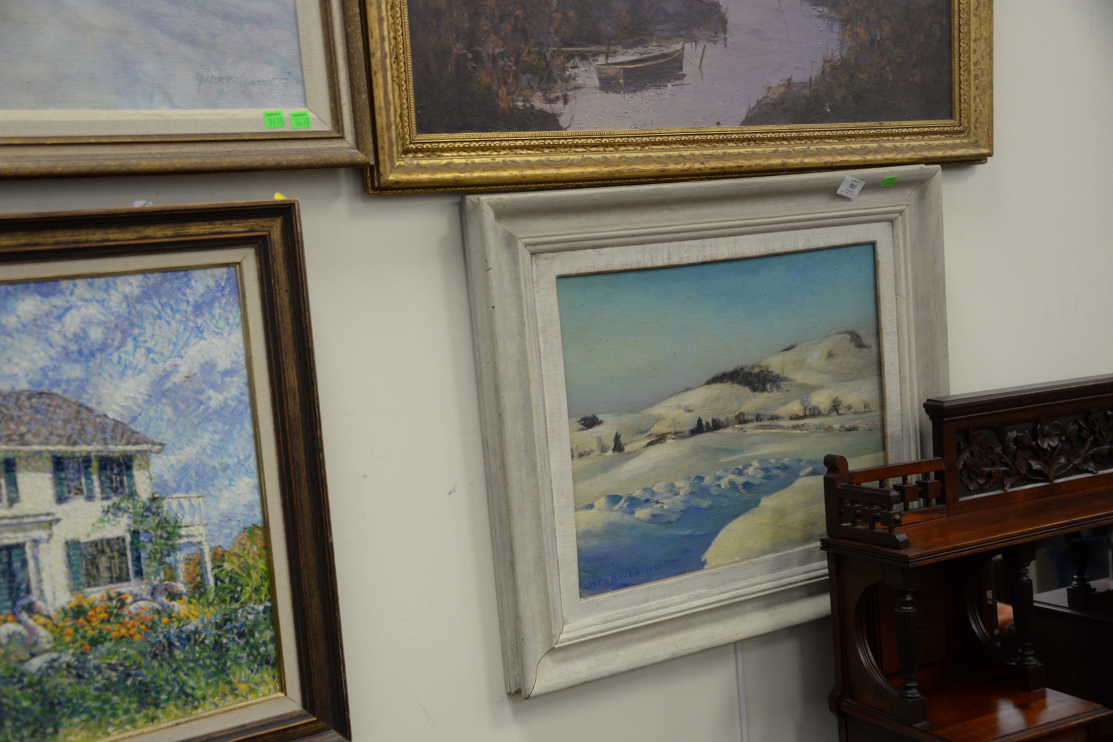 along with three Gigi Horr Liverant, Tatum Cove Malon’s Barn, Hamburg Cove, Lyme, Connecticut, and a winter landscape