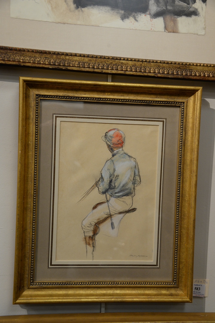 Lot 583: Henry Hoehler American, 1927 – 2018 Jockey Up, Rear, 1987 oil on paper, mixed media signed, titled and dated Henry Koehler…