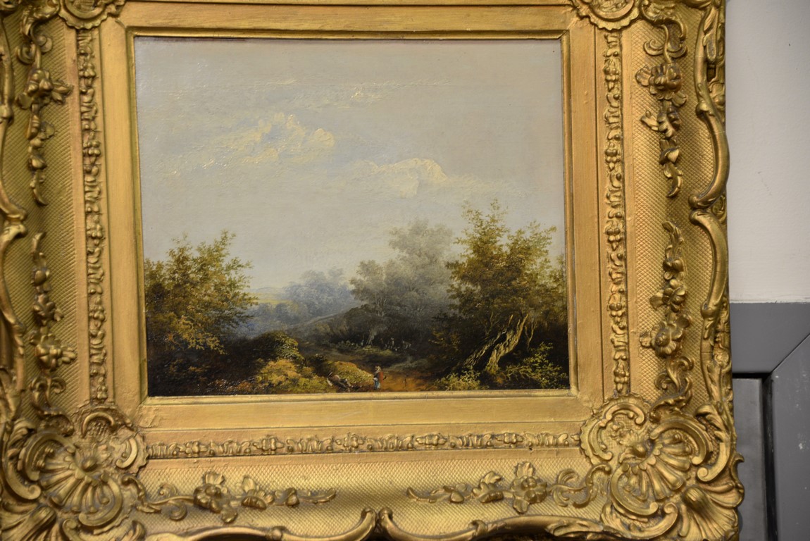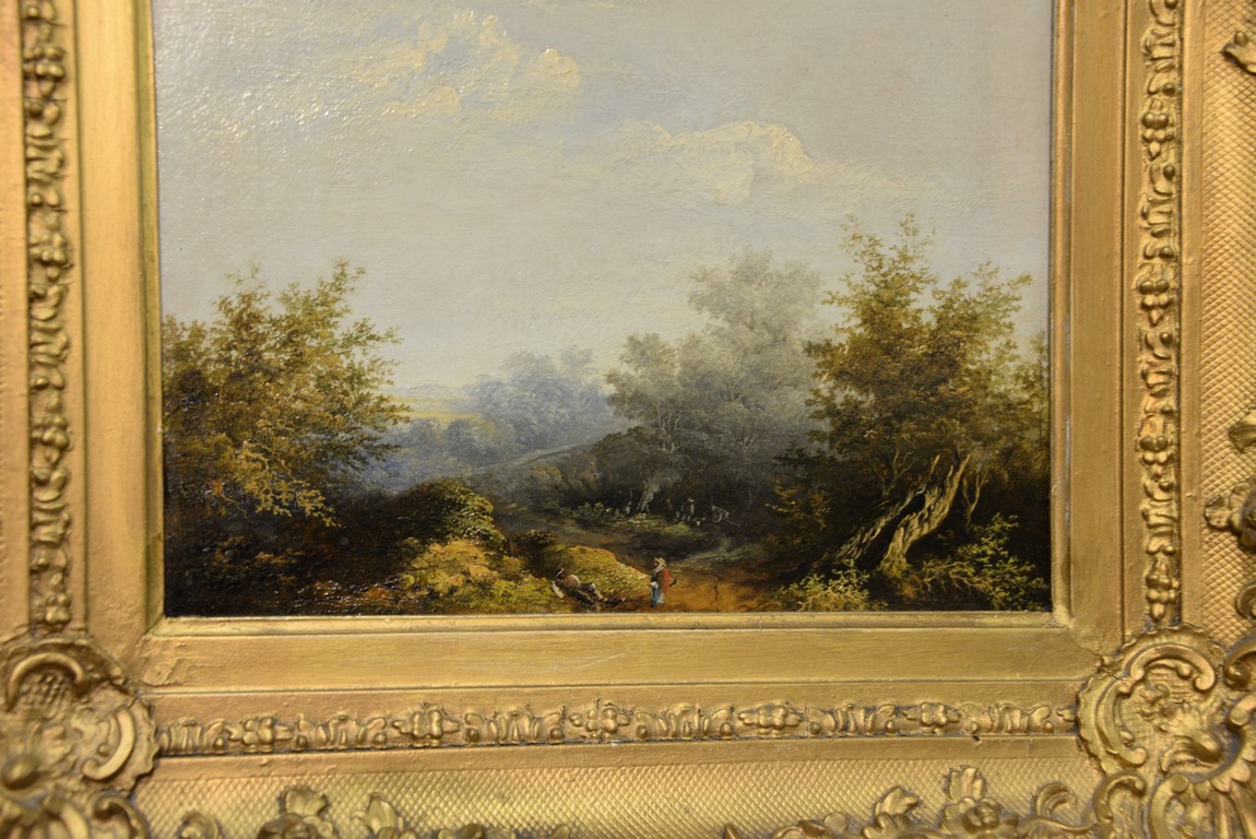 Lot 583: Pair of 18th / 19th century paintings landscapes with figures oil on canvas relined 10 x 12 Provenance: Property…