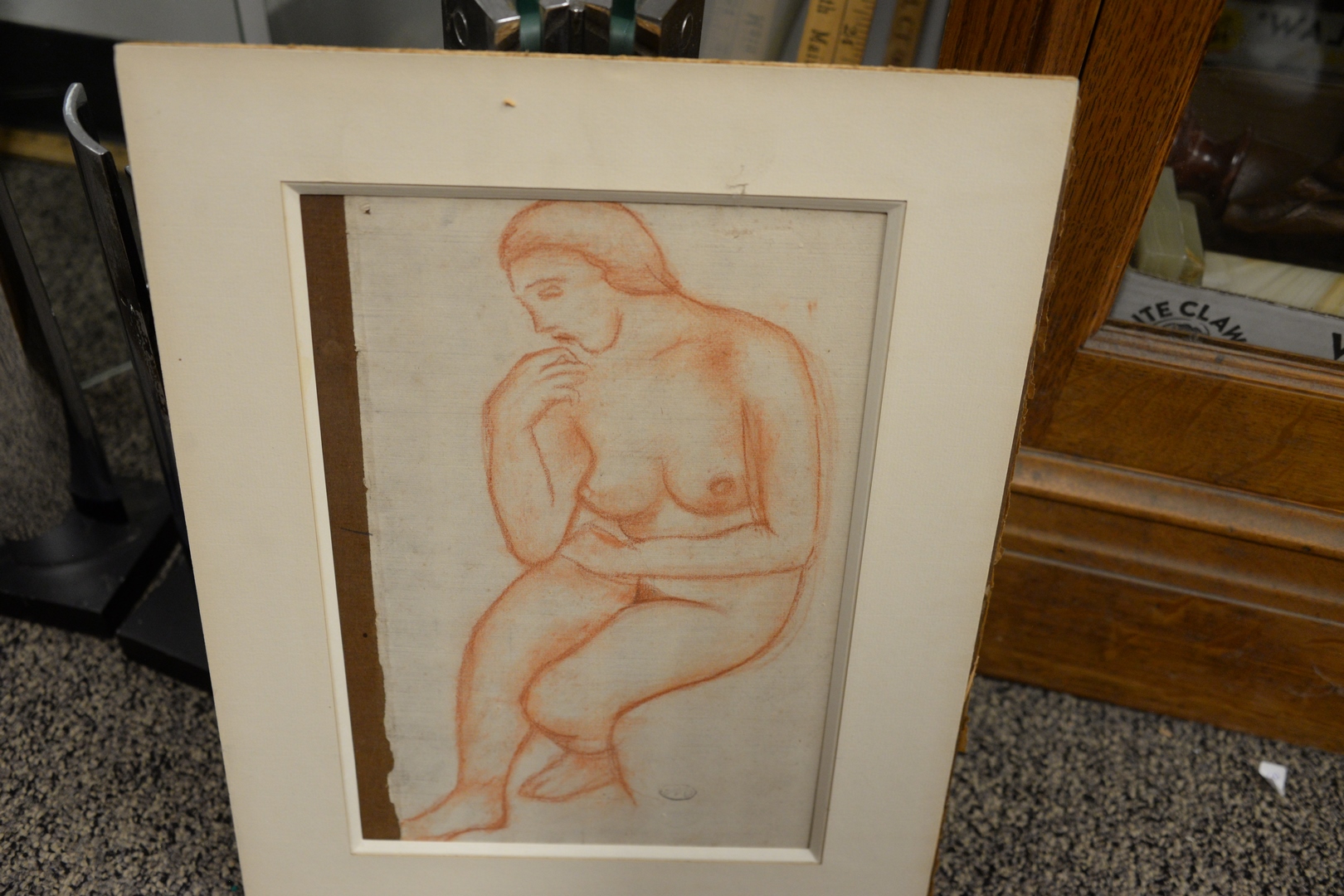 Lot 583: Three Piece Lot to include Aristide Maillol 1861 – 1944 sanguine on paper laid down, monogrammed M lower right along with two…