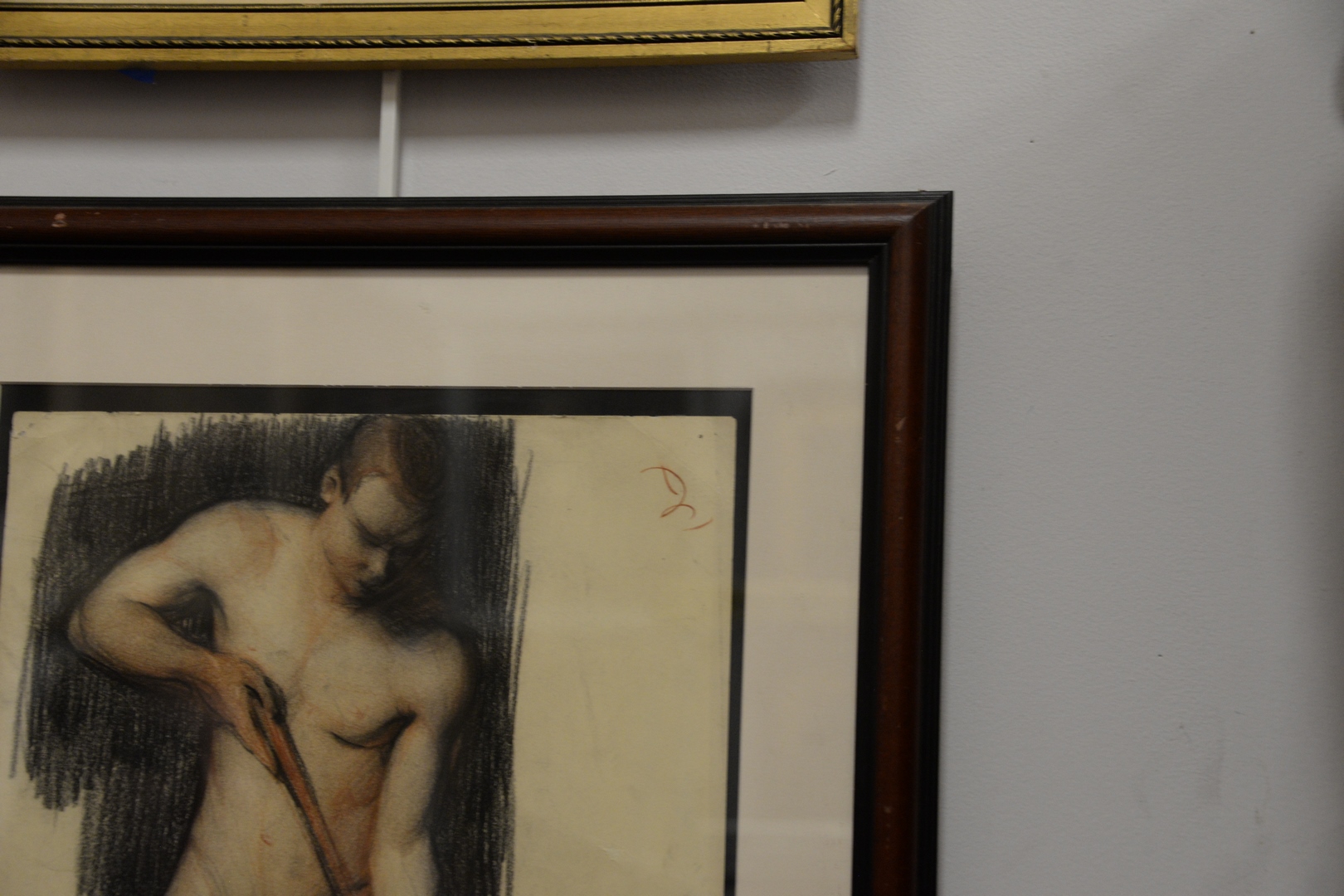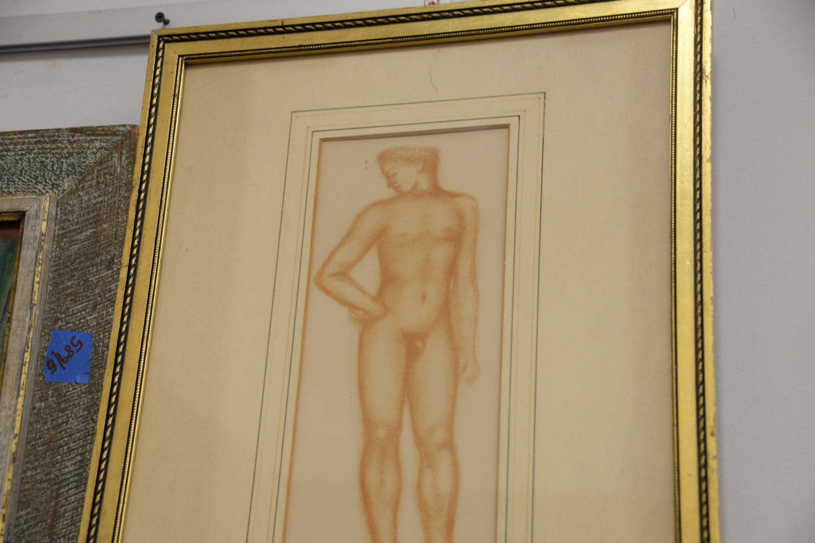 Three Piece Lot to include Aristide Maillol 1861 – 1944 sanguine on paper laid down, monogrammed M lower right along with two male nudes, both pastel on paper.
