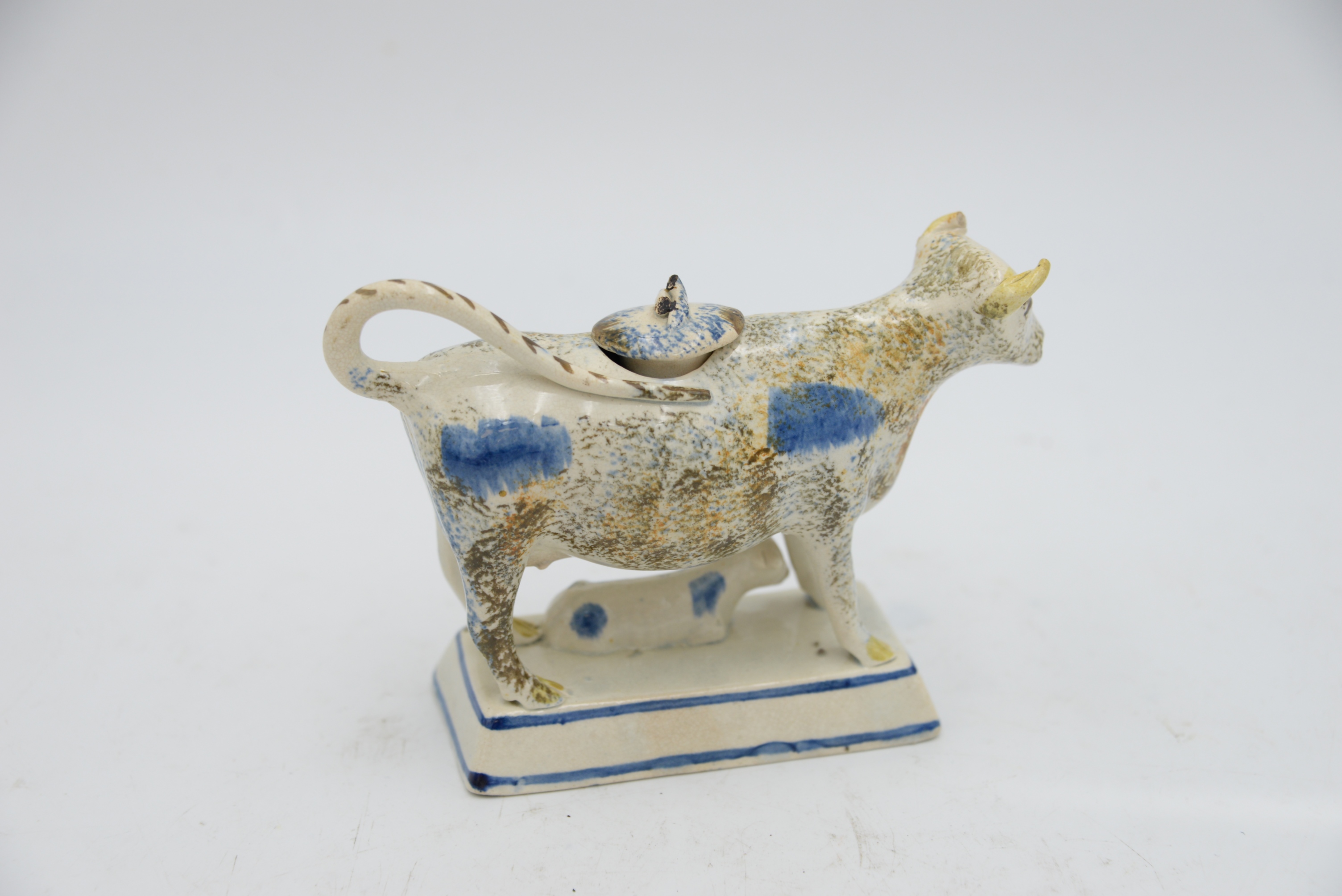 Lot 584: English Staffordshire Pearlware Pottery Cow Creamer with Lid
