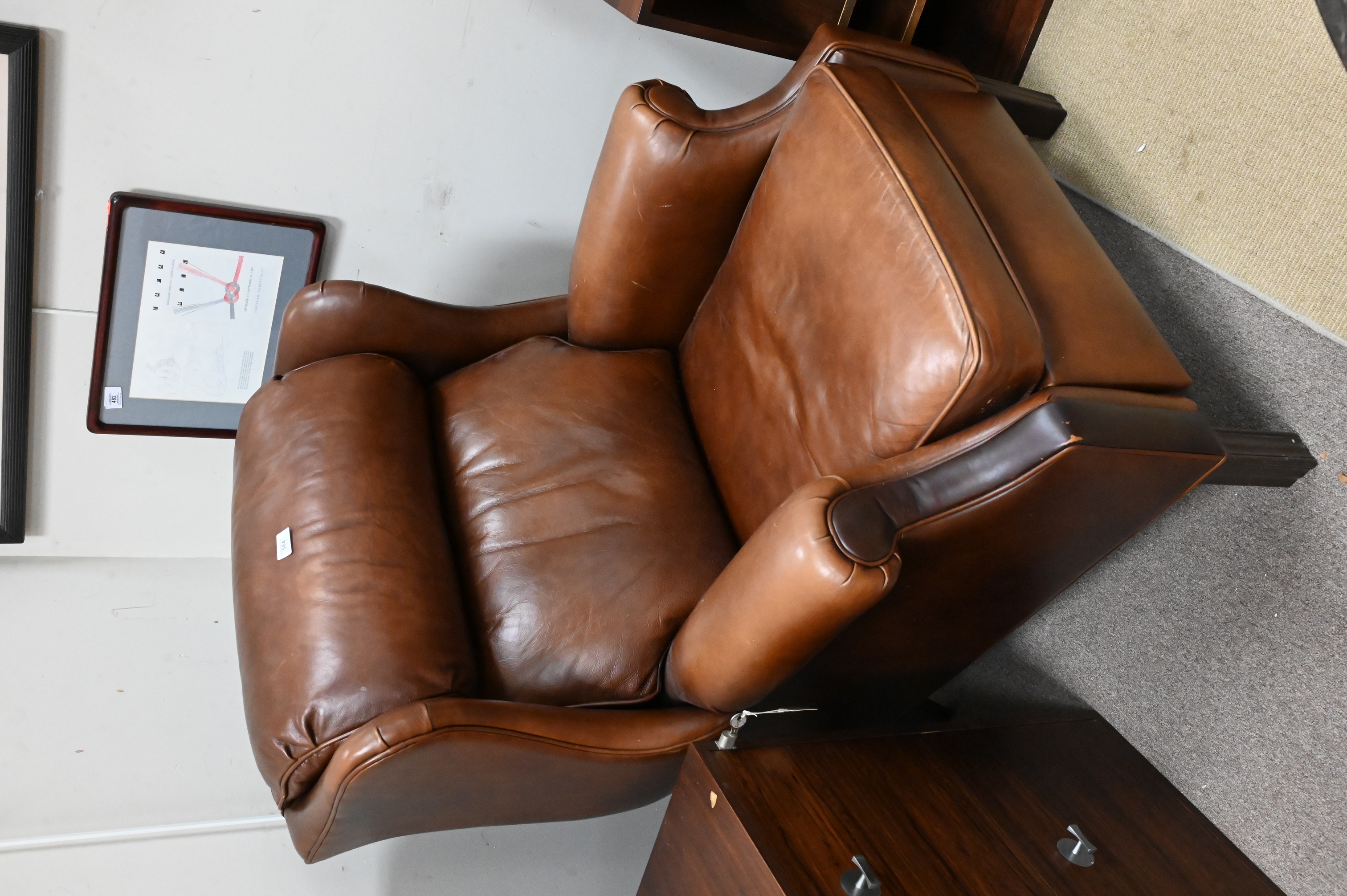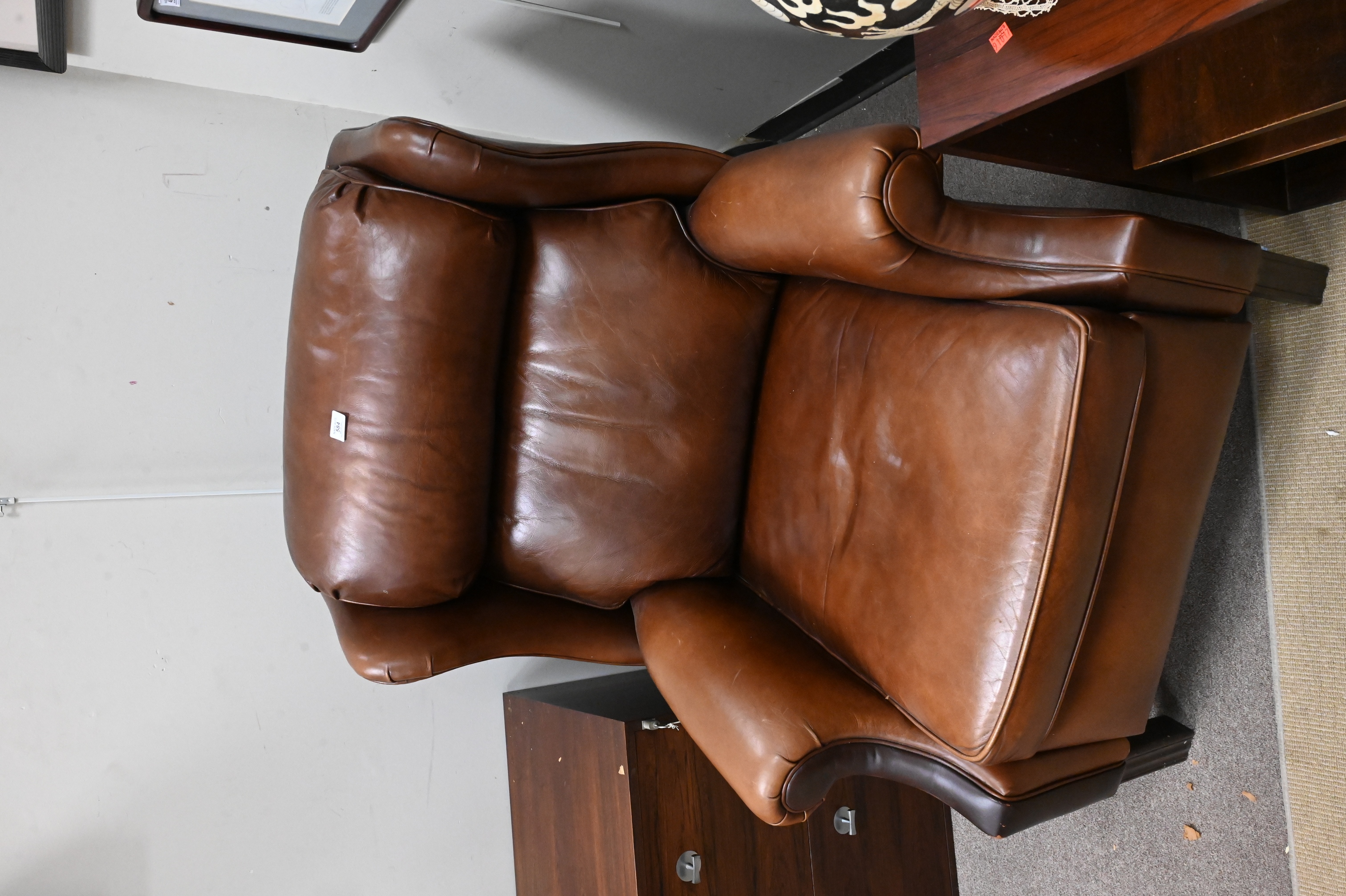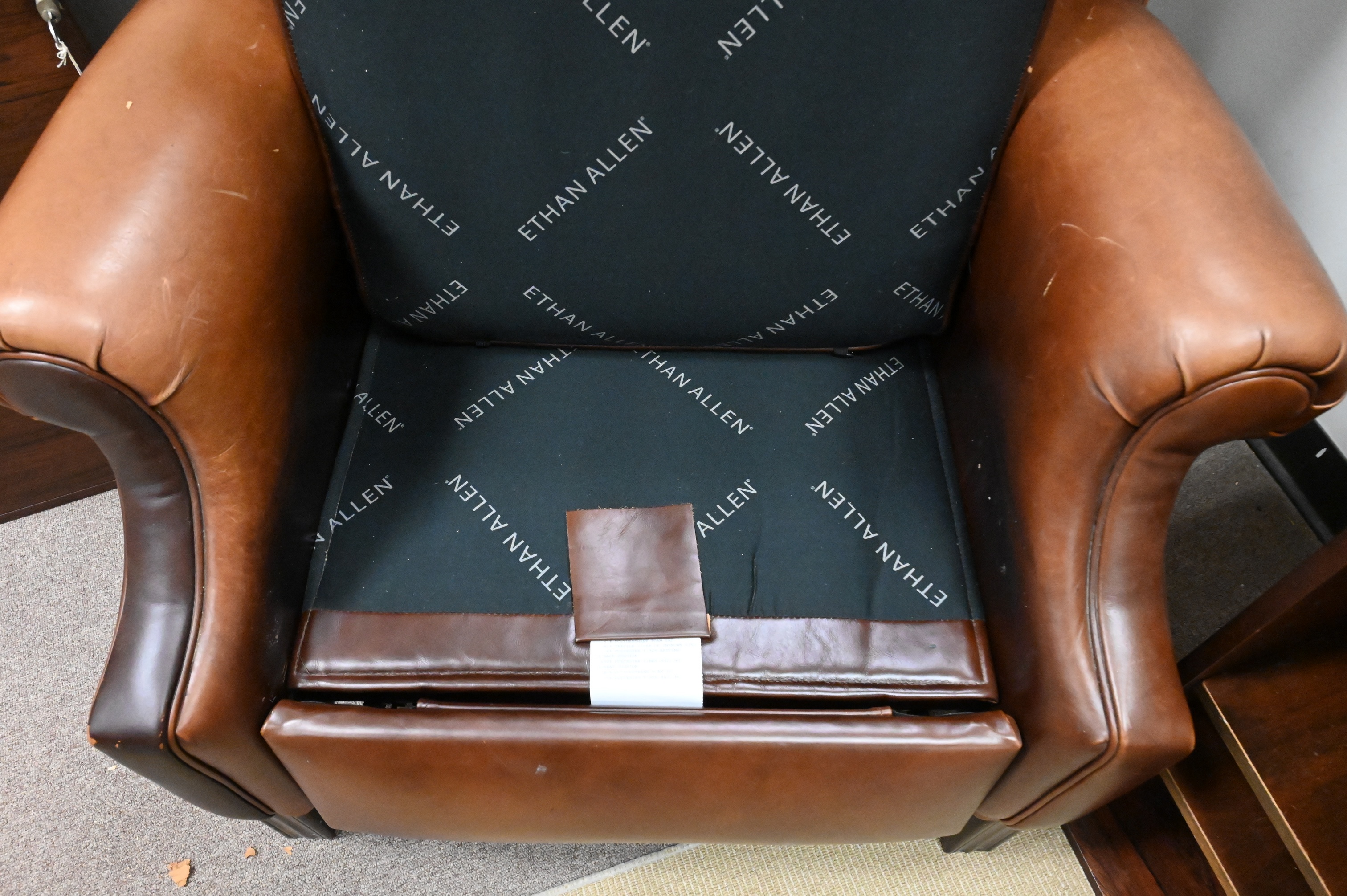 Lot 584: Ethan Allen Leather Upholstered Wingback Recliner