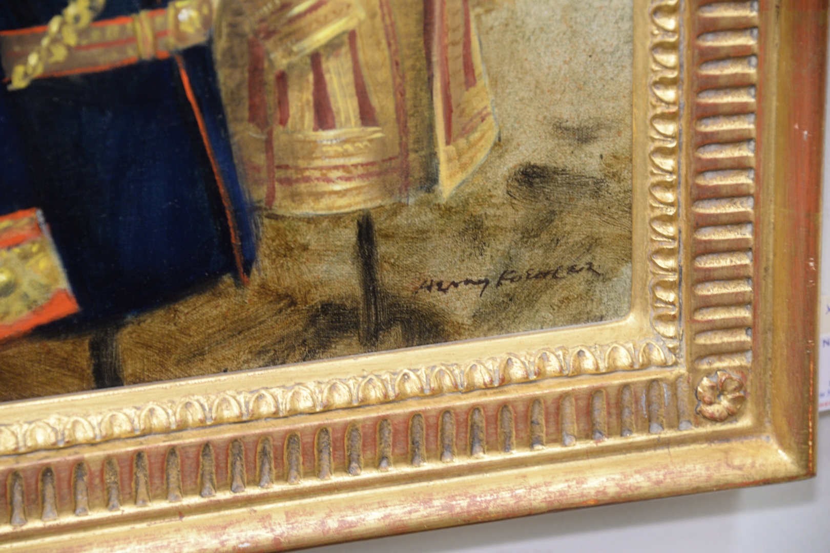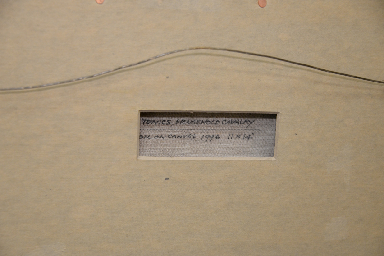 Henry Koehler American, 1927 – 2018 Tunics, Household Cavalry, 1996 oil on canvas signed, dated and titled Henry Koehler lower right verso 11 x 14 Provenance: The Estate of Gloria Schiff, 630 Park Avenue, New York