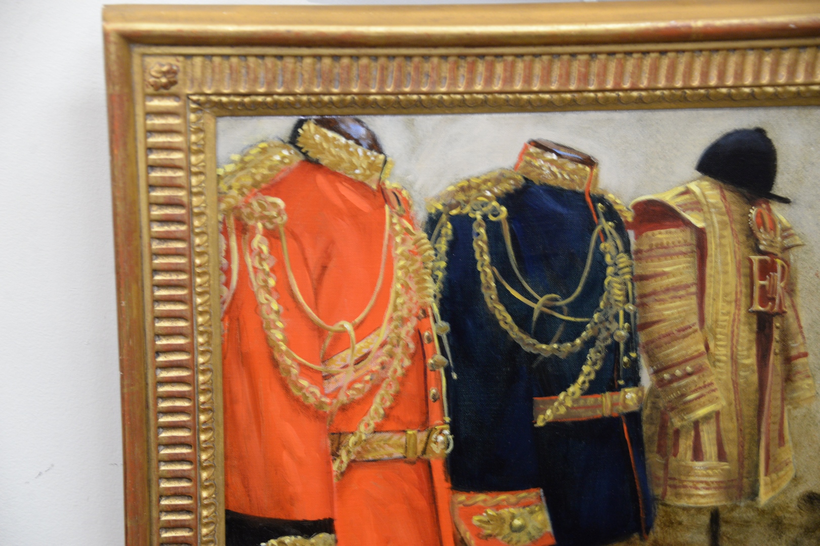 Lot 584: Henry Koehler American, 1927 – 2018 Tunics, Household Cavalry, 1996 oil on canvas signed, dated and titled Henry Koehler l…