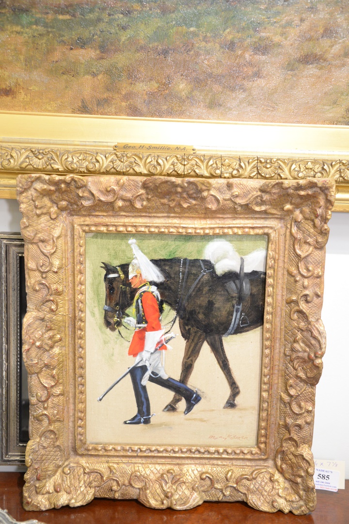 Henry Koehler American, 1927 – 2018 Lifeguard’s Trooper, Dismounted, 1999 oil on canvas laid on panel signed, dated and titled Henry Koehler verso 9 3/4 x 7 7/8 Provenance: Newhouse Galleries, New York: The Estate of Gloria Schiff, 630 Park Avenue, New York