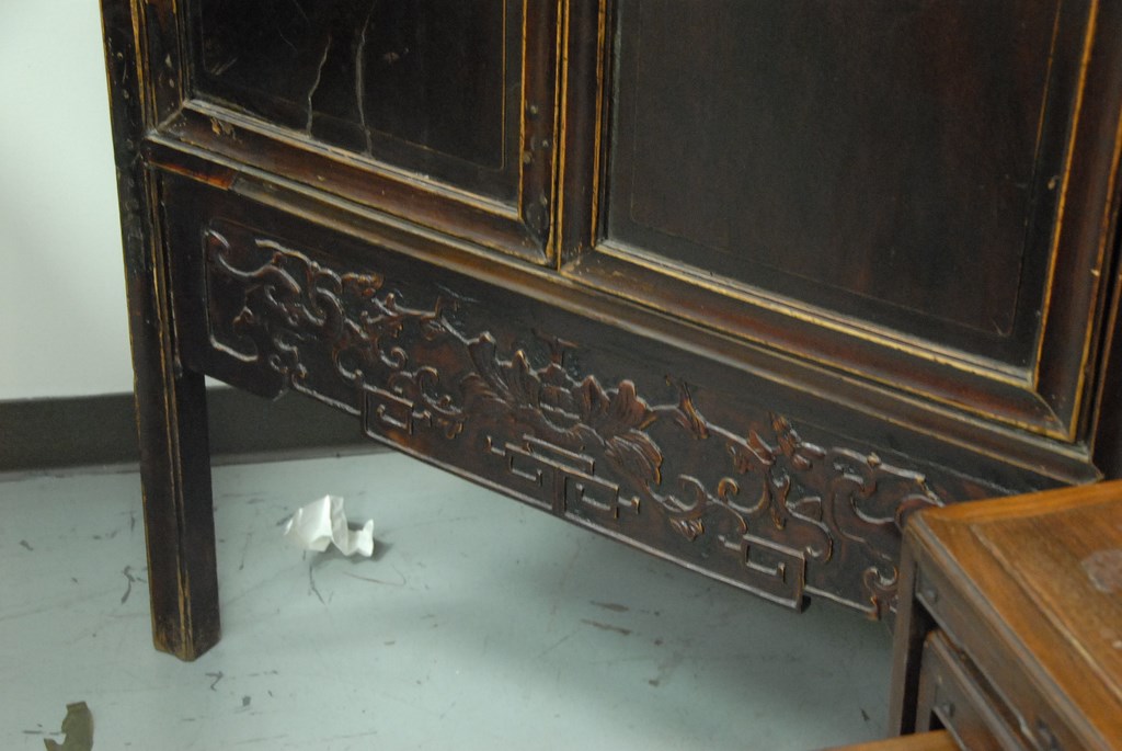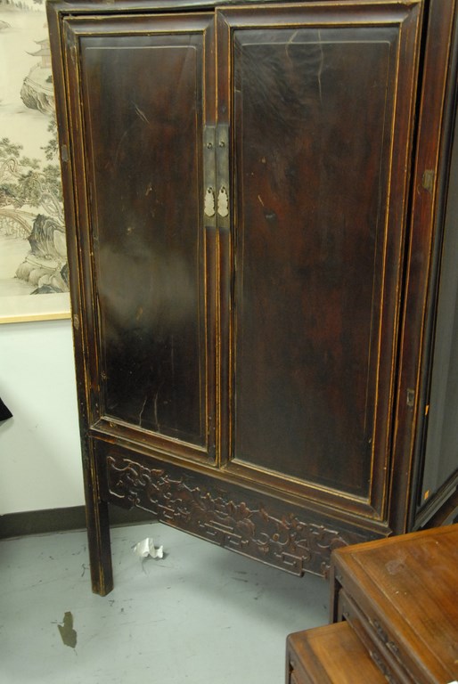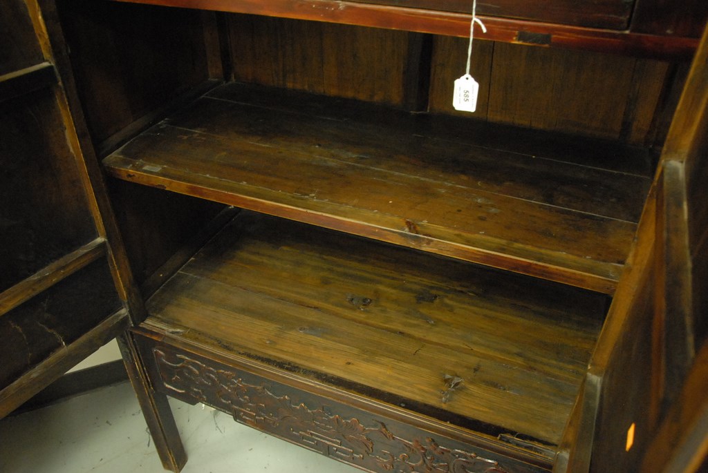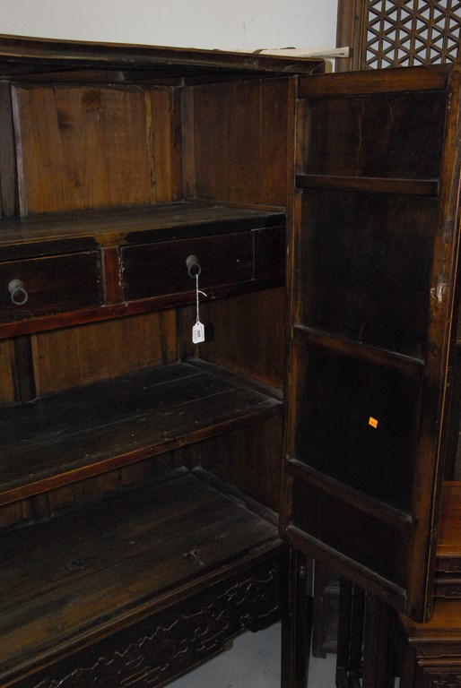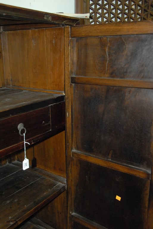 Lot 585: Nanmu two door cabinet, 18th century or early 19th century, having fitted three shelves and two drawers. ht. 67 1/2in. wd. 40in.