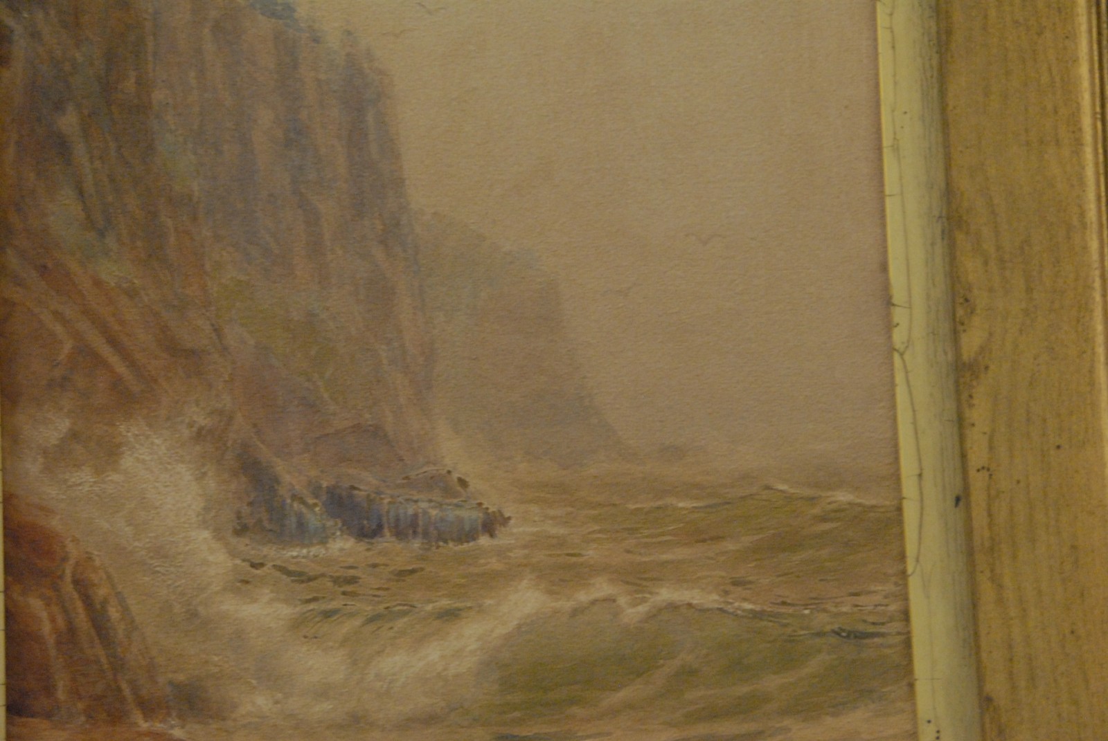 Evelyn M. Bicknell American 1857 – 1936 WAVES CRASHING ON CLIFF SIDE watercolor signed lower right E.M. Bicknell.
