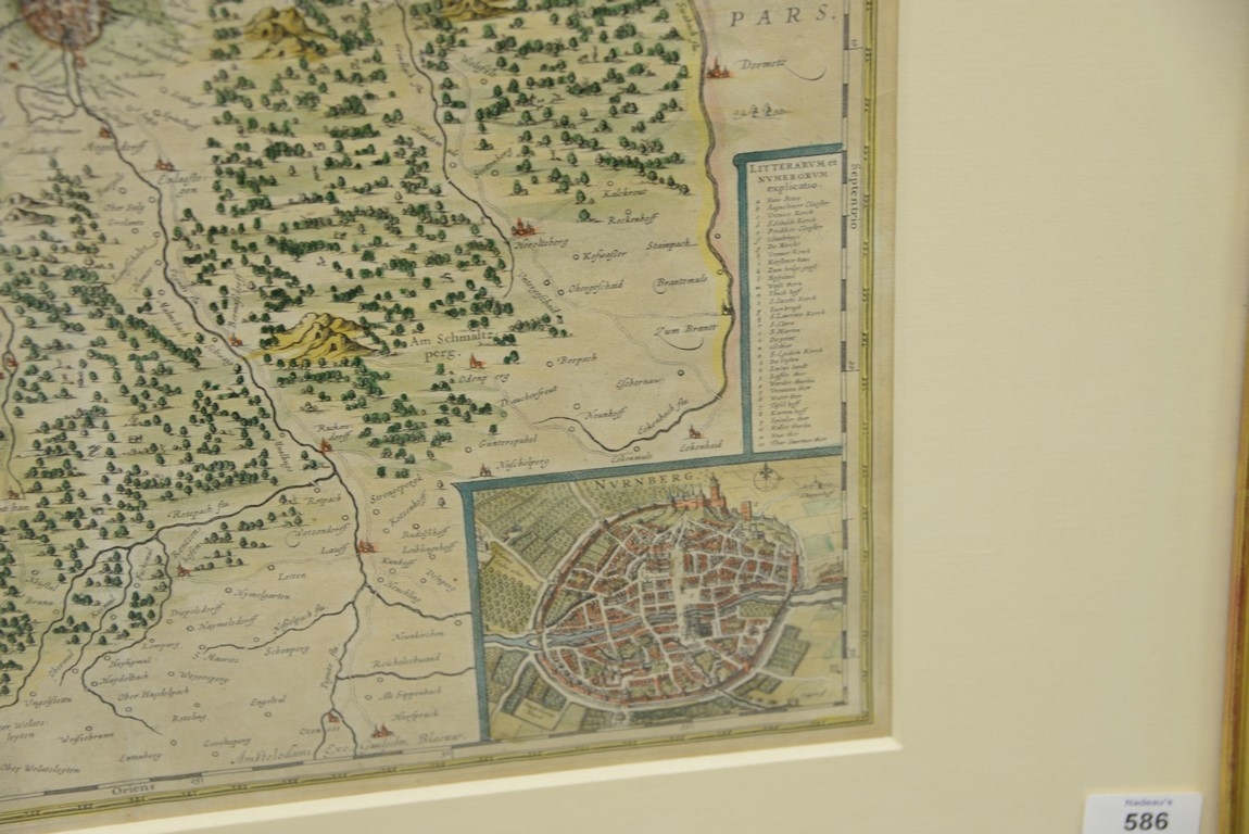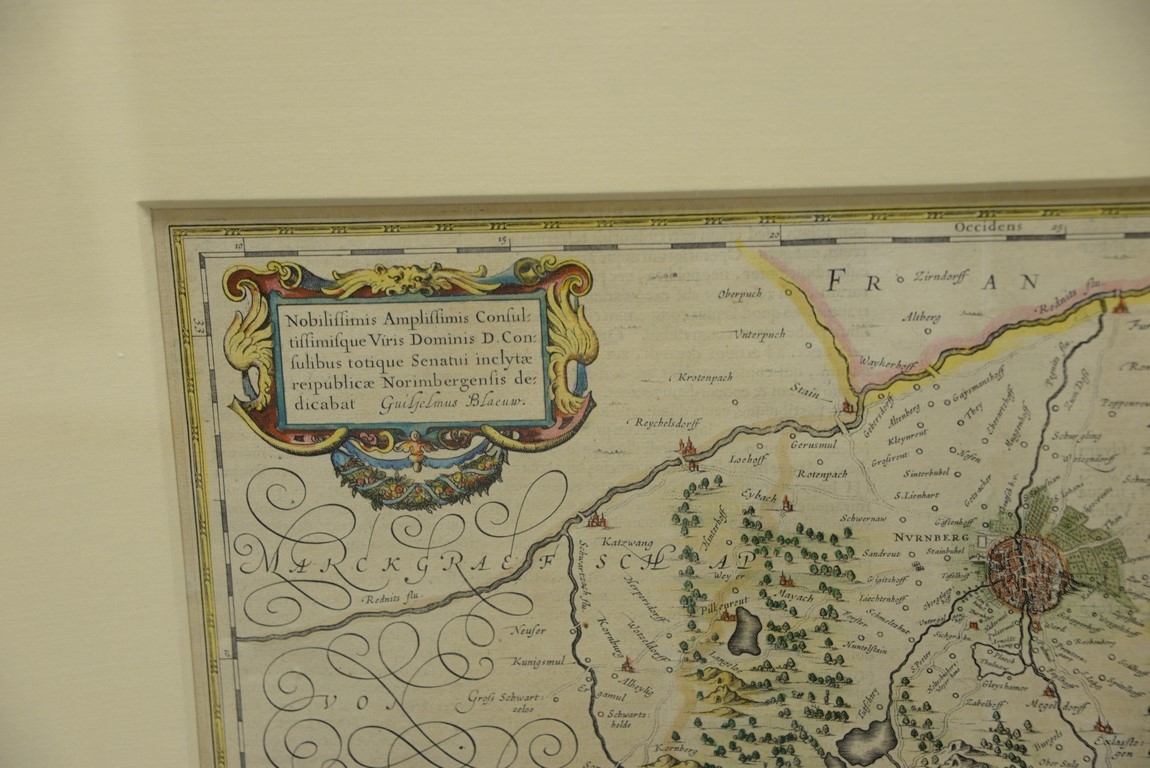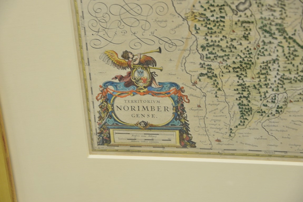 Lot 586: Guillaume Blaeu Territoium Norimbergense hand colored engraving of a map sight size: 14 3/4 x 18 3/4 Provenance: Pro…