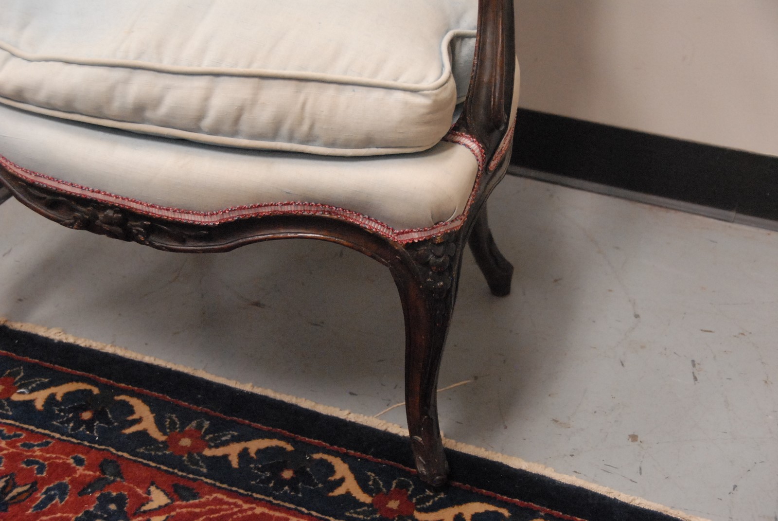Lot 586: Louis XV walnut armchair with floral crest padded back, arms and seat and carved cabriole legs. Provenance: Property from The Estate of Margaret Reventlow of Litchfield, CT