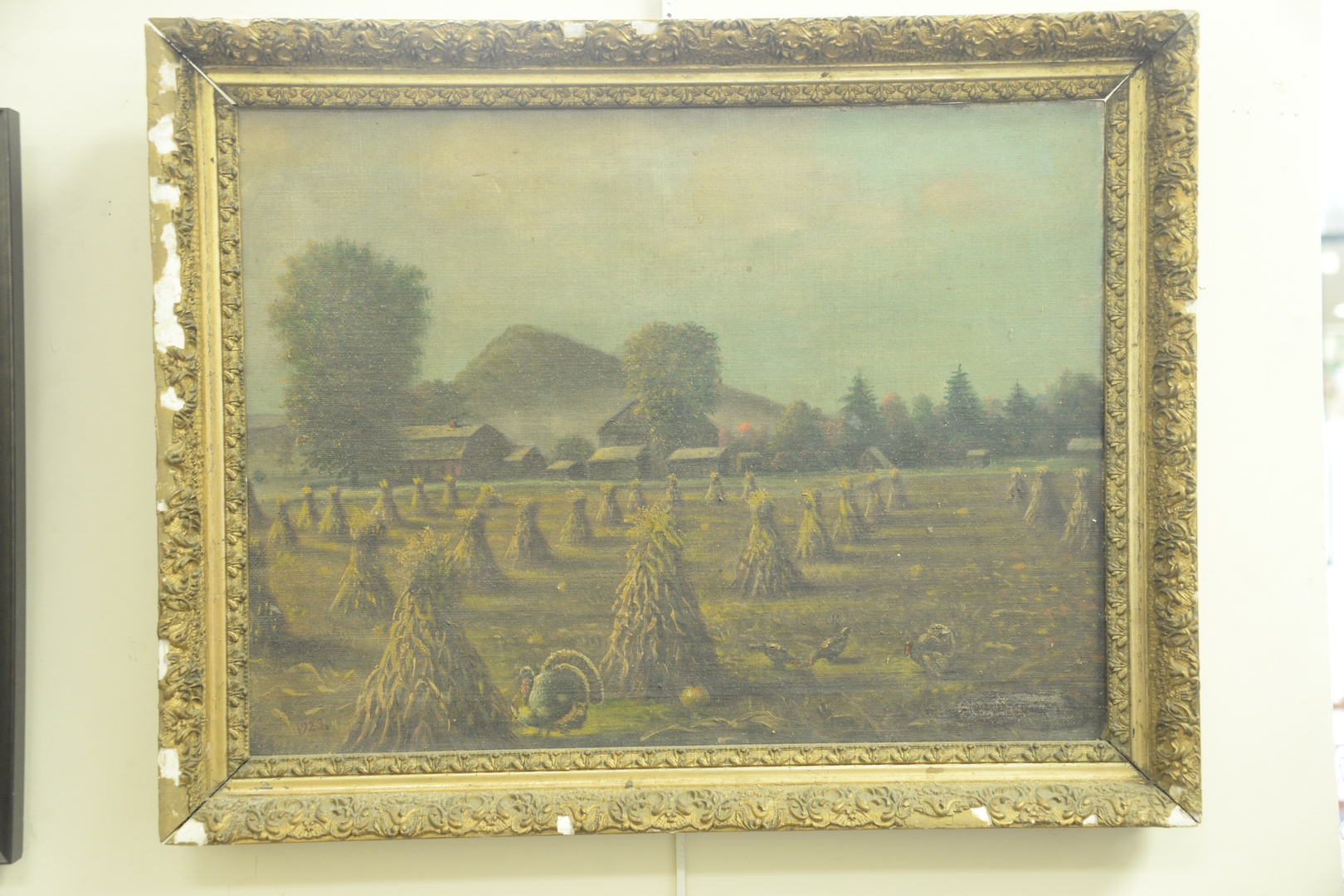 to include B.V. Brook, oil on canvas, farm landscape with cornstalks, signed B.V. Brook, 1923