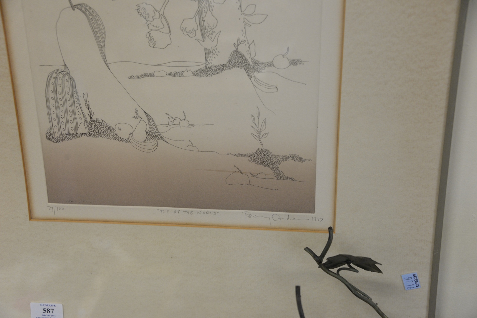 Lot 587: Benny Andrews American, 1930 – 2006 Top of the World, 1977 etching in colors on paper signed, editioned 74/100, dated and titled…