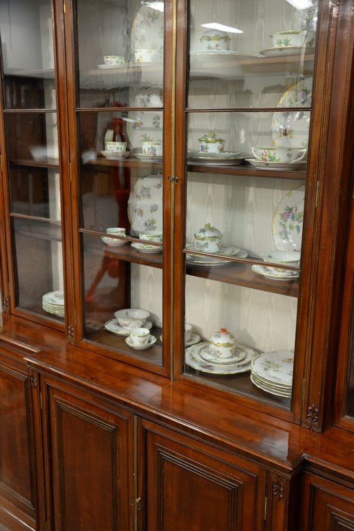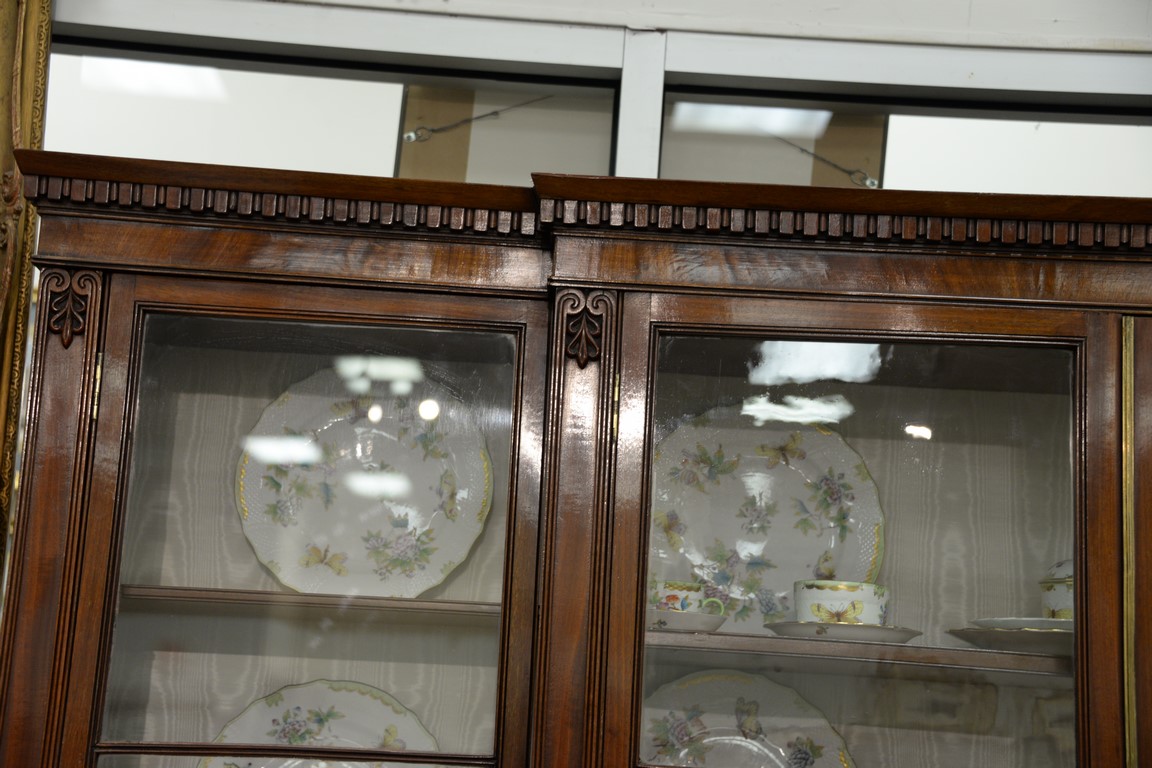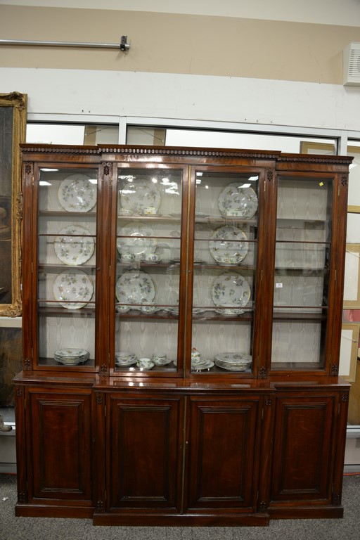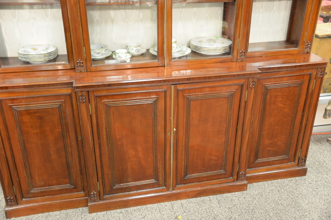 Lot 588: George III mahogany bookcase/cabinet in two parts with four glass doors on lower section with four doors, 19th century. ht. 80in., …