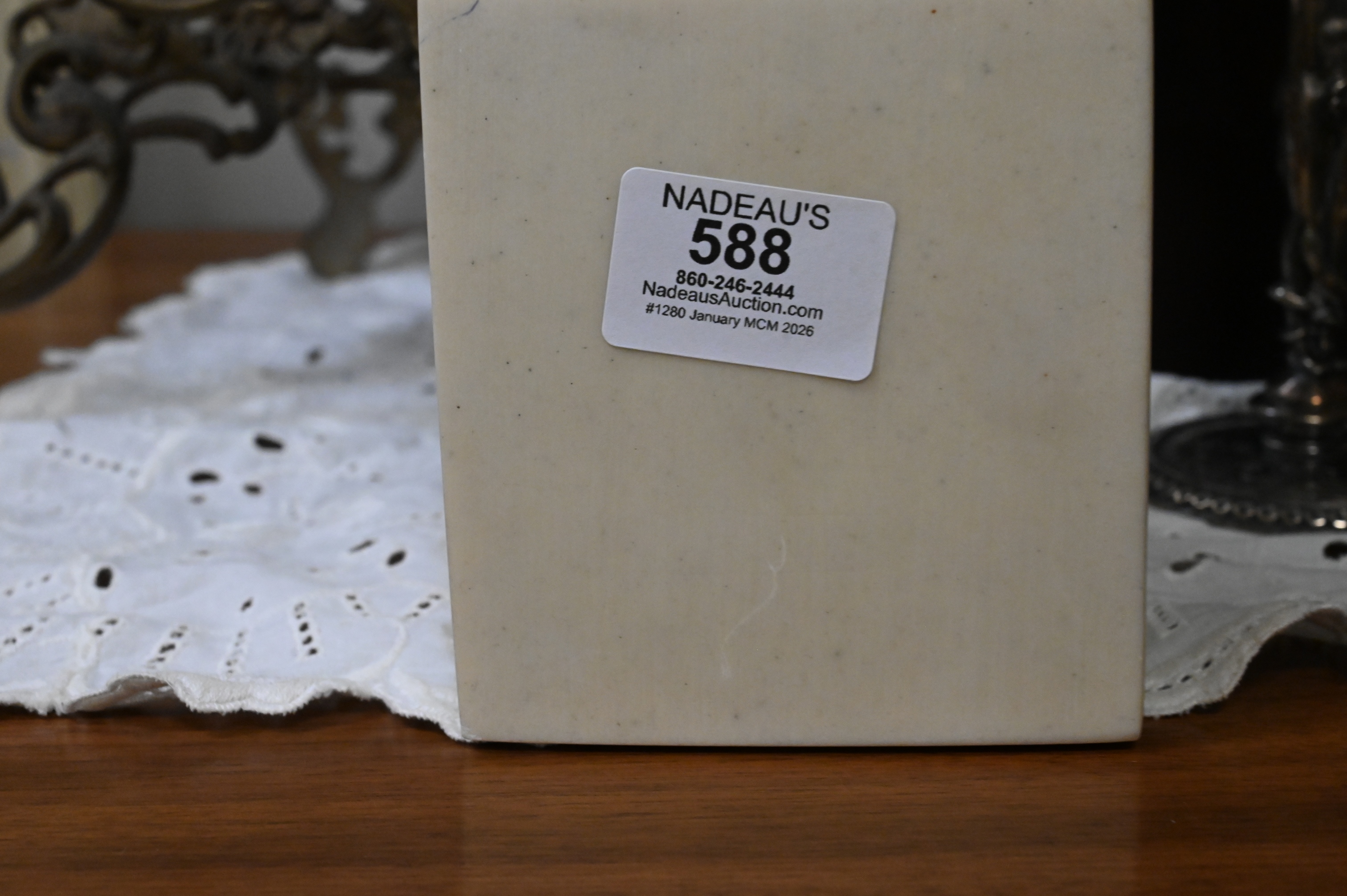 This report is provided by Nadeau’s Auction Gallery as a courtesy and reflects our opinion only. Bidders should conduct their own due diligence. The absence of a report does not imply the lot is free of issues. Assessments are based on visual inspection; unless noted, items have not been examined under UV light, movements and electrical components have not been tested, and artworks are generally not removed from frames. We are not professional conservators, and this report is not a comprehensive condition evaluation. Images provided form part of the report and should be reviewed carefully. All sales are final. For in-person inspection, please call 860-246-2444 or email info@nadeausauction.com.