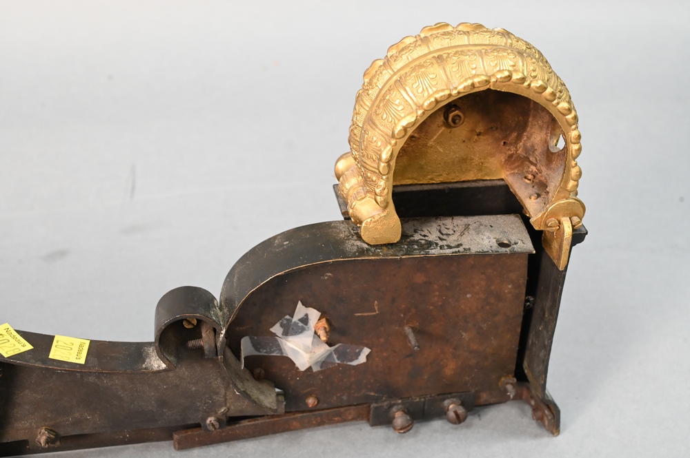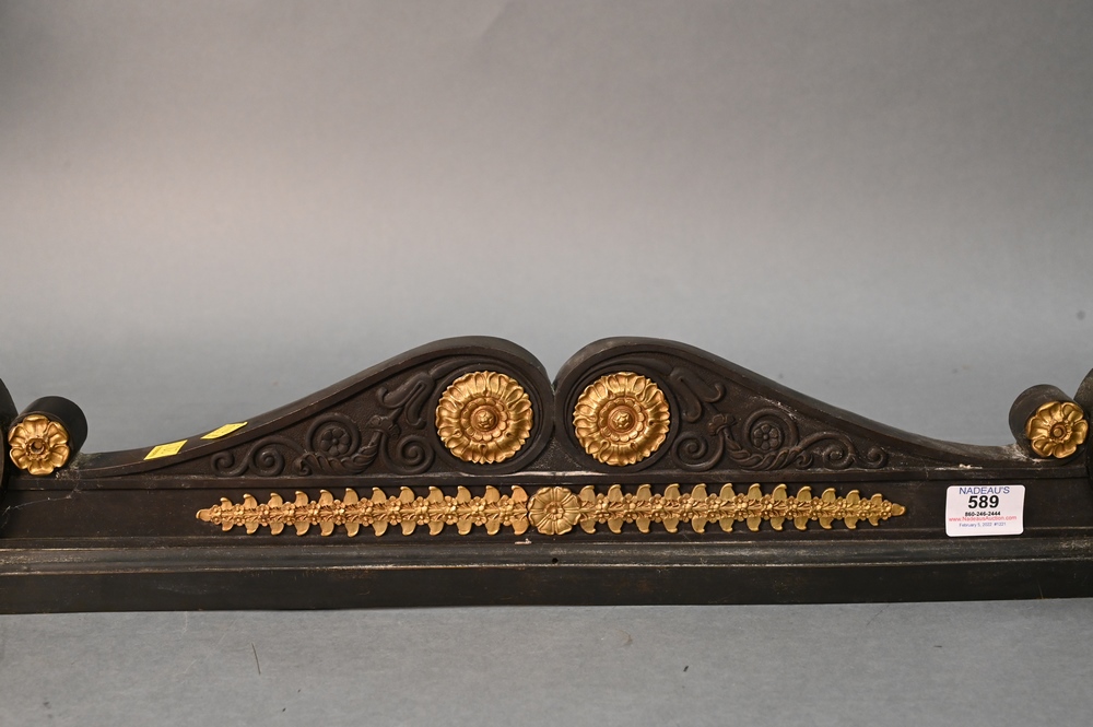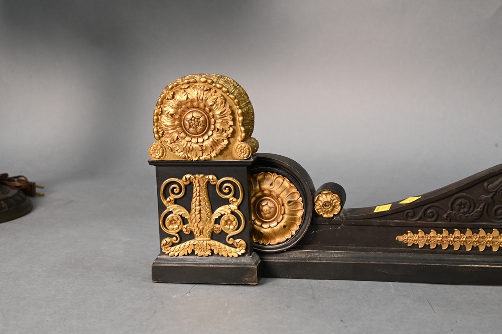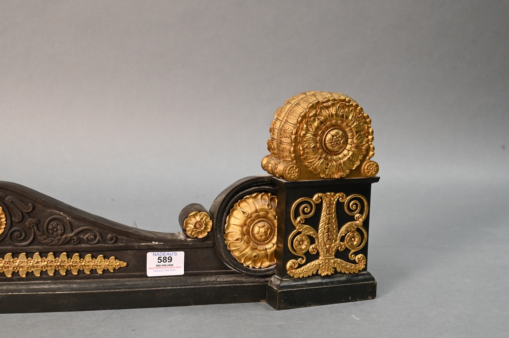 Lot 589: French Bronze Iron Fireplace Chenets and Fender, 19th century, length 38 inches.