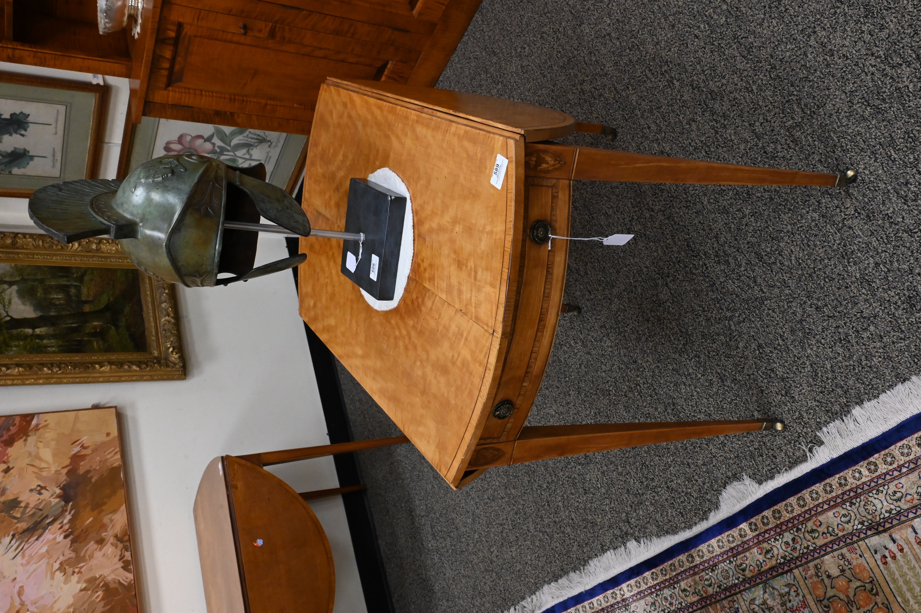 having bowed ends and drawer with inlay all set on square tapered legs, circa 1800