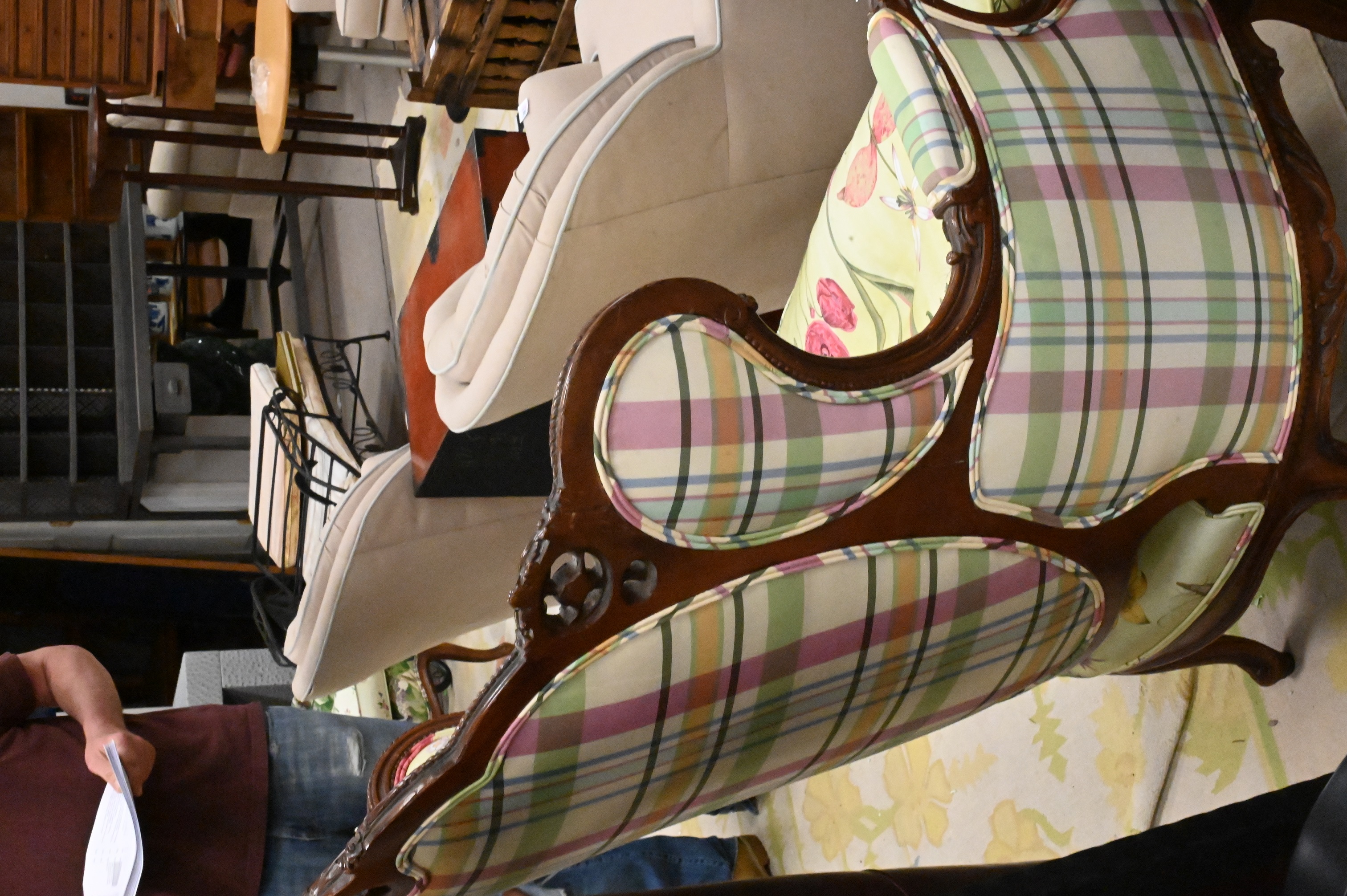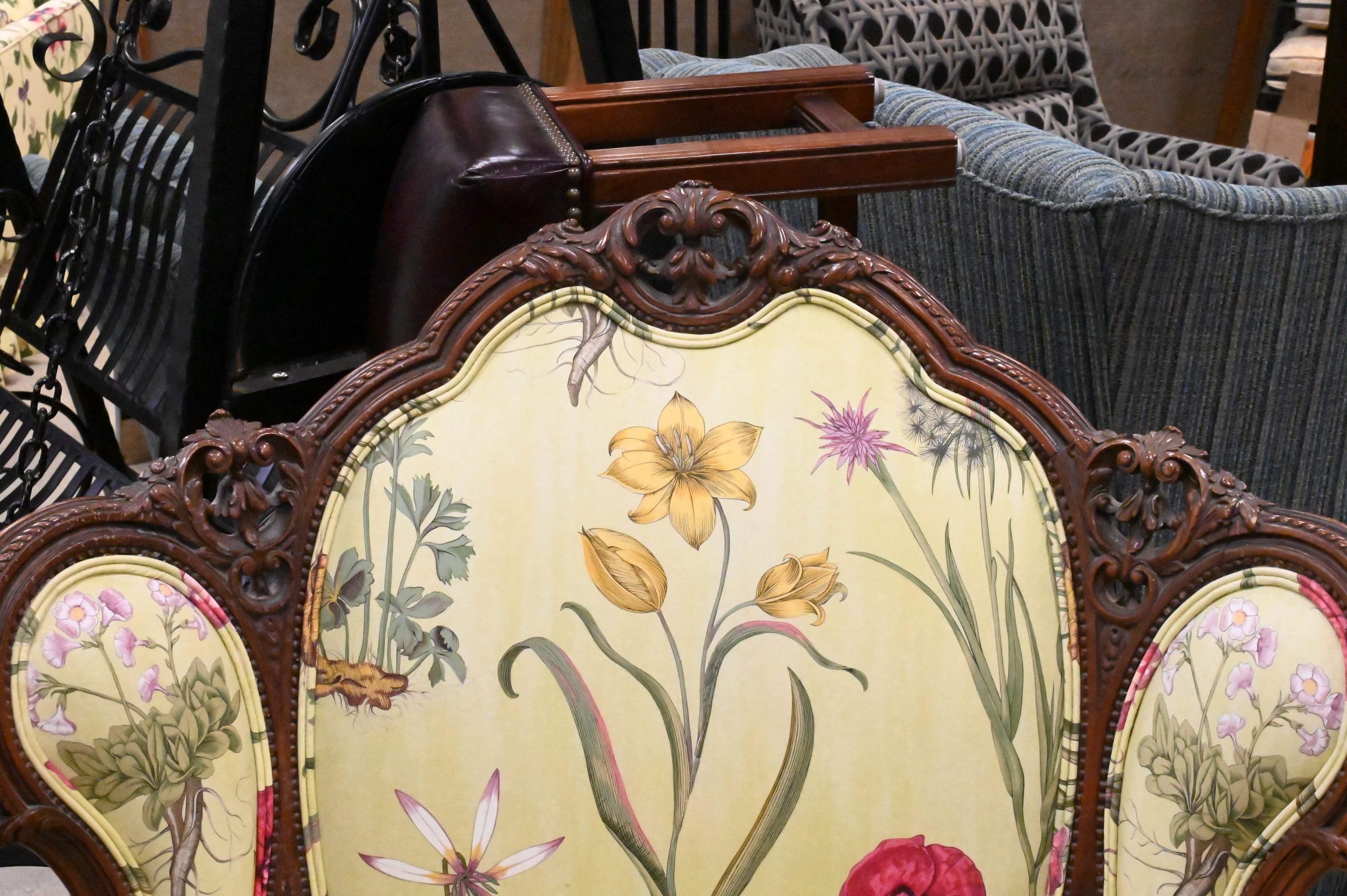Lot 589: Two Louis XV Style Upholstered Armchairs