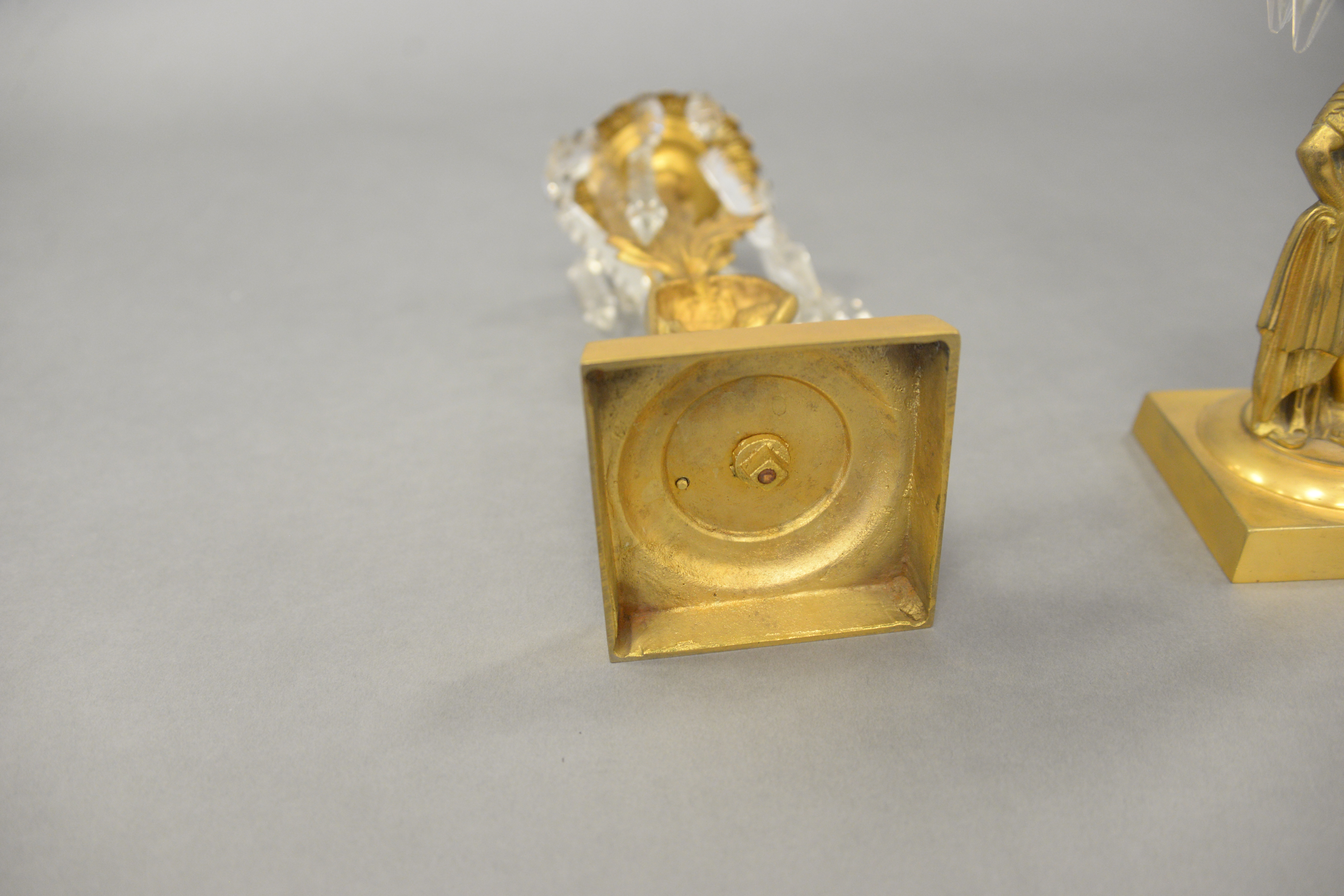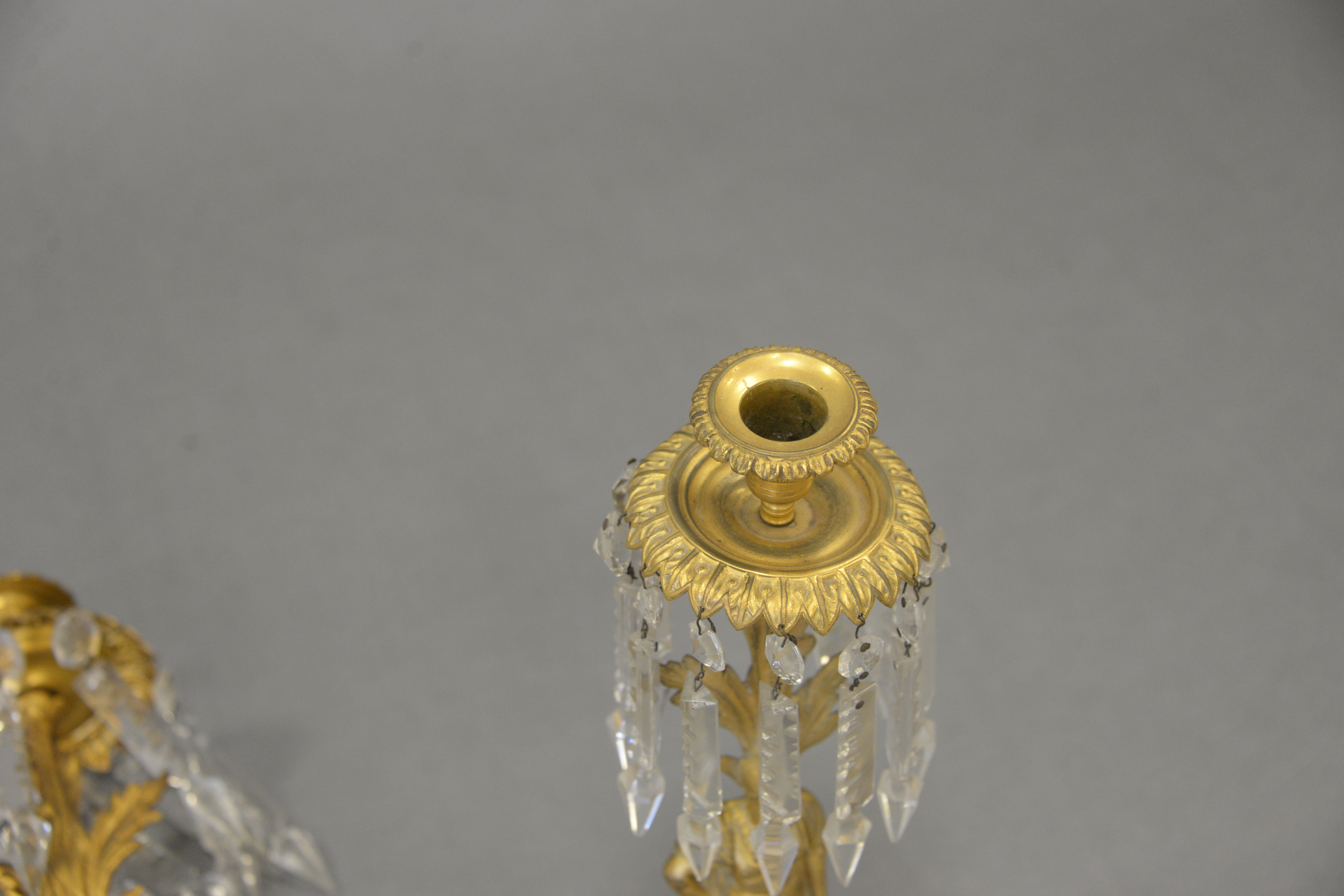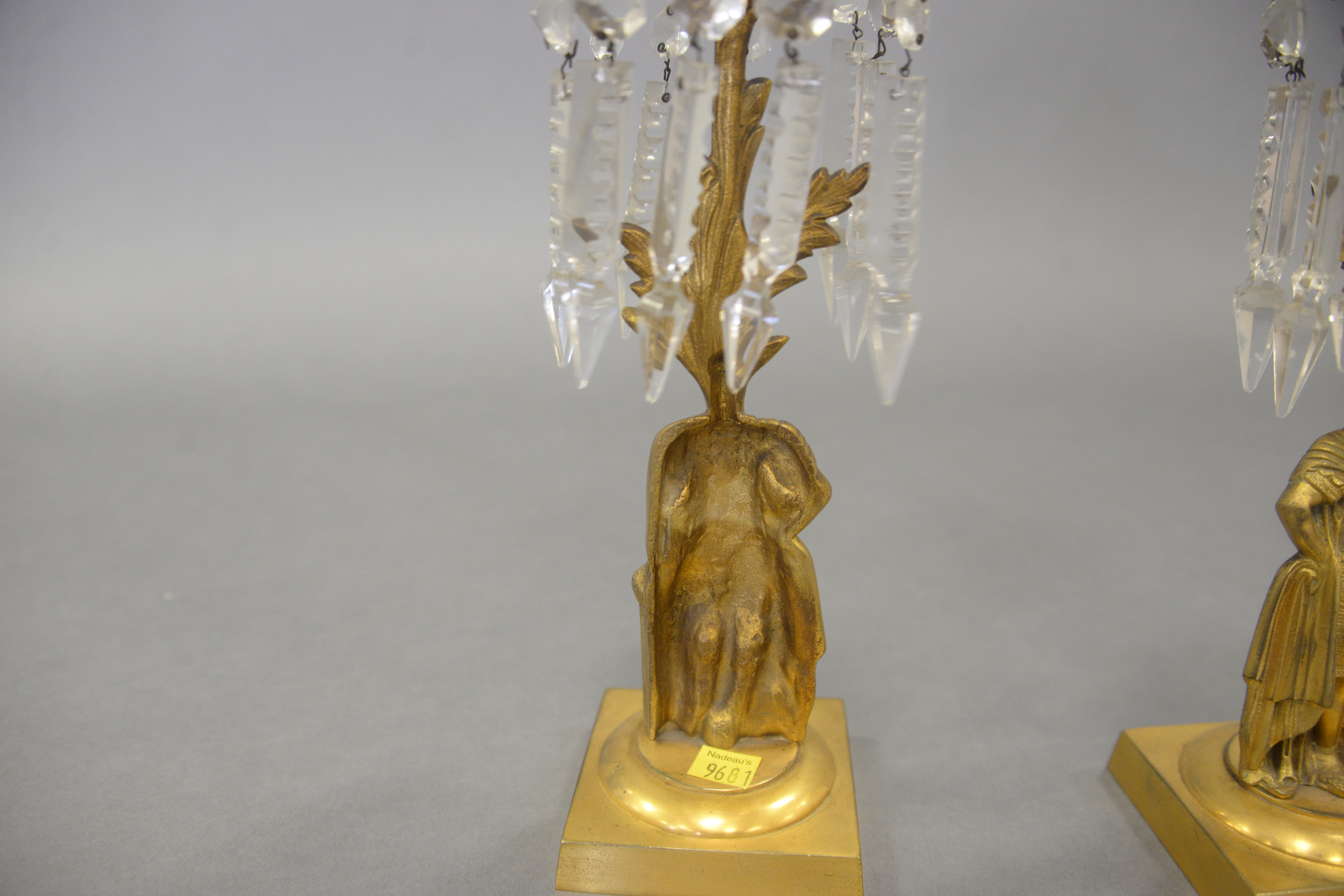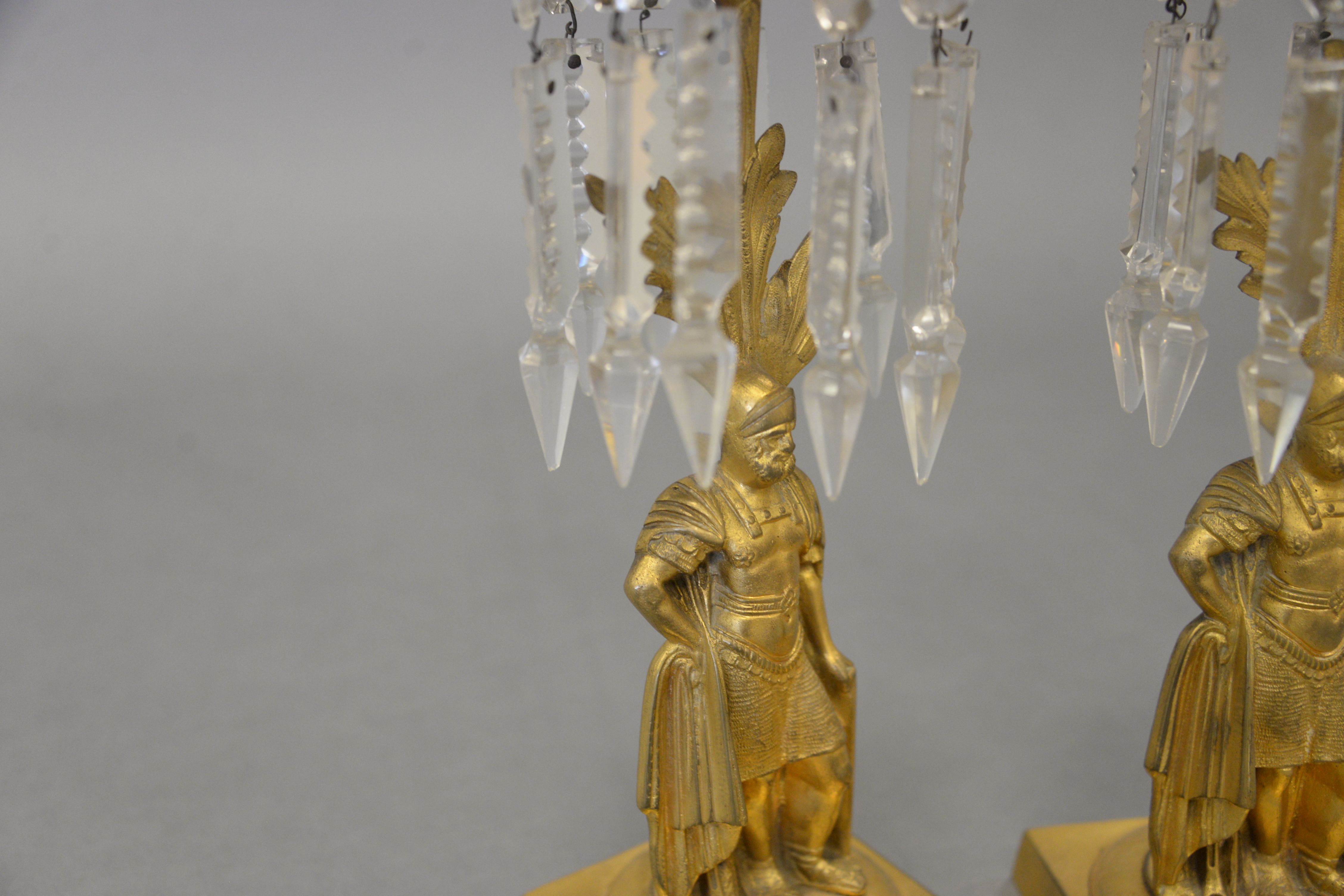 Pair of Victorian Candlesticks with Prisms, each with figural soldier bases, height 12 inches.
