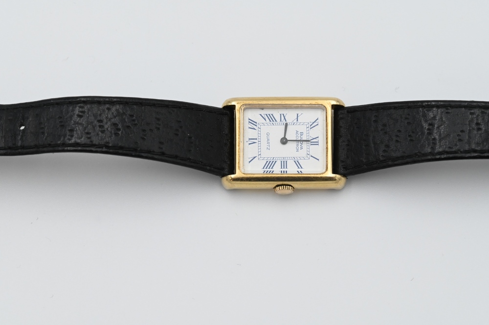 14 Karat Gold Bulova Accutron Square Mens Wristwatch, 23 millimeters.