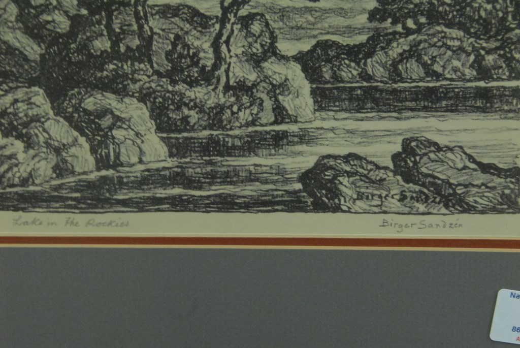 Lot 59: Birger Sandzen 1871-1954 LAKE IN THE ROCKIES lithograph pencil signed lower right Birger Sandzen titled lower left La…