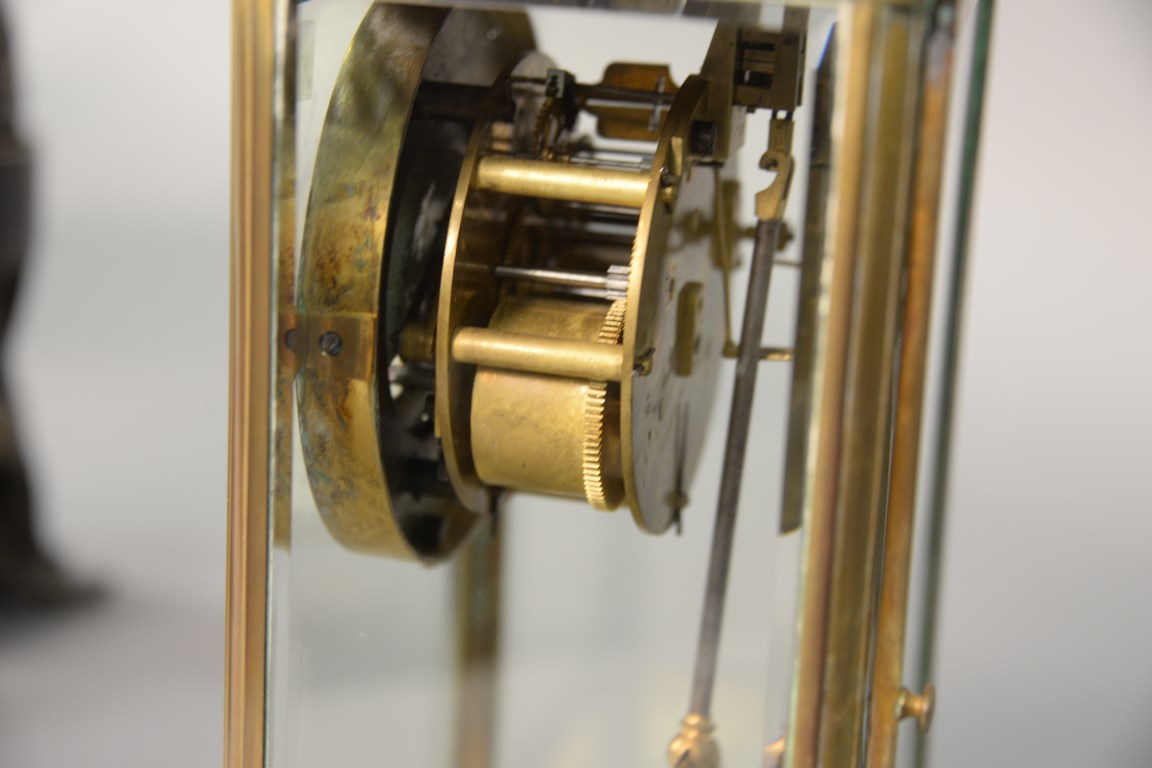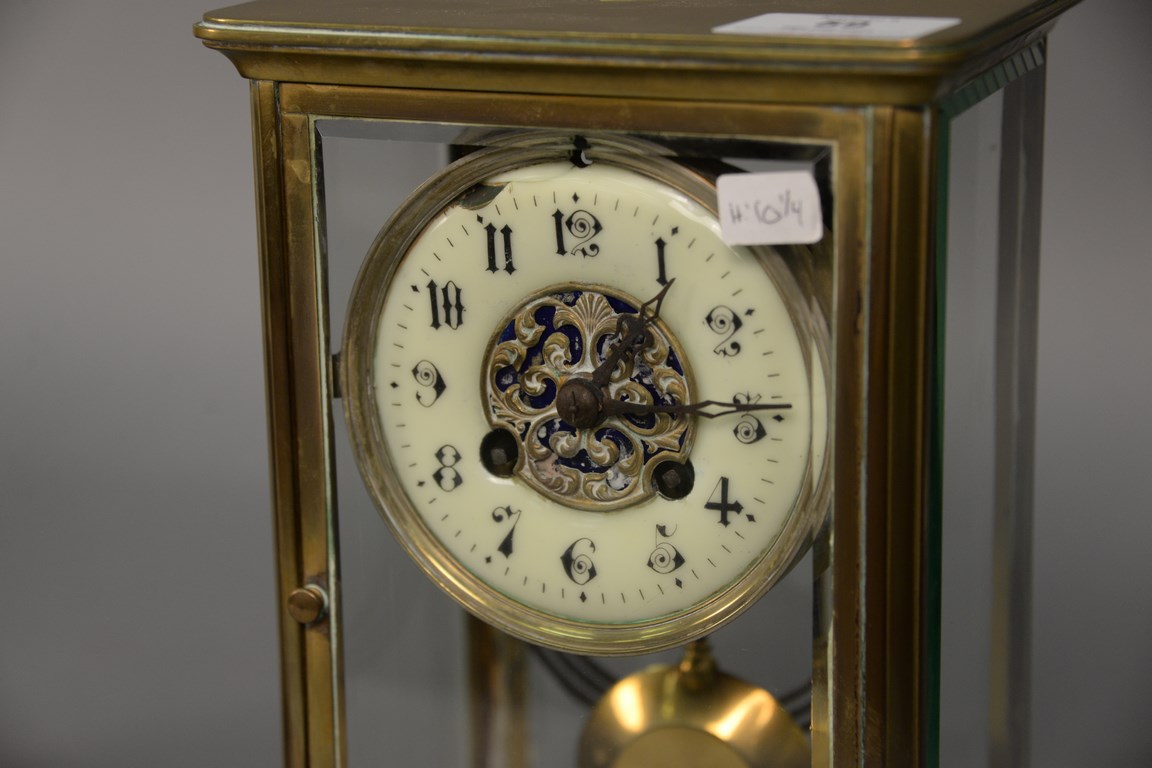 Brass and glass regulator clock, ht. 10 1/2 in.