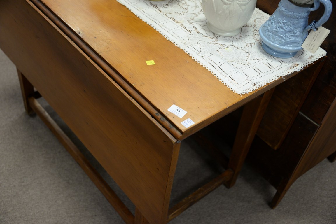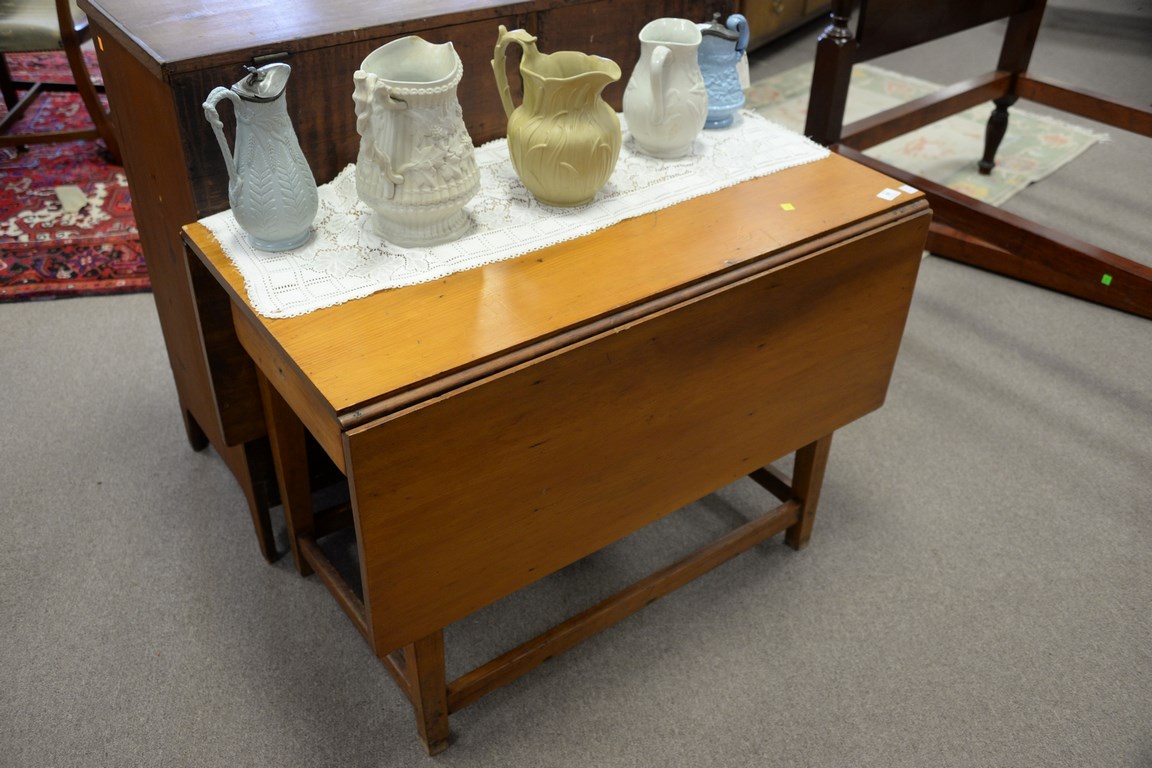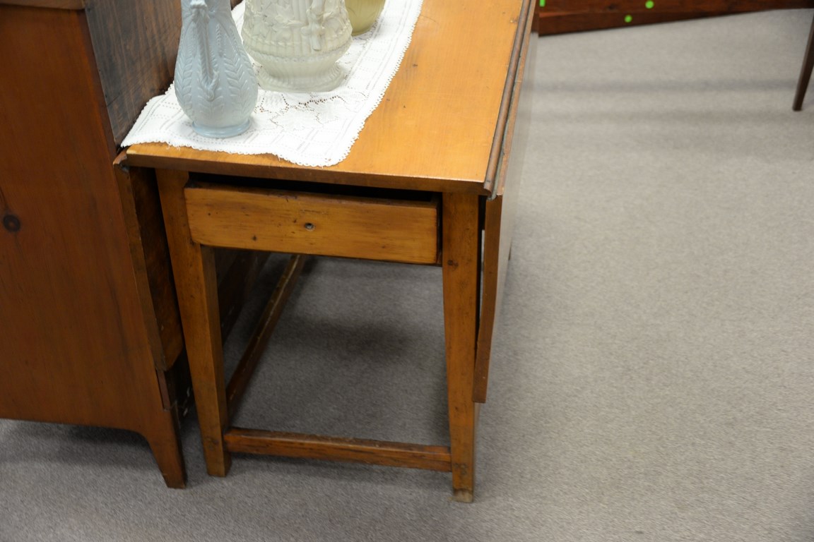 Lot 59: Country pine Federal drop leaf table with a drawer, circa 1790-1810. ht. 28 1/2 in. top: 20 1/2 x 40 open: 40 x 50 1/2