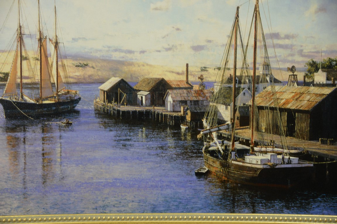 Lot 59: David Thimgan 1955-2003 lithograph on canvas Blue Harbour signed and numbered by artist David Thimgan 2/250-, Mystic Seaport Museu…