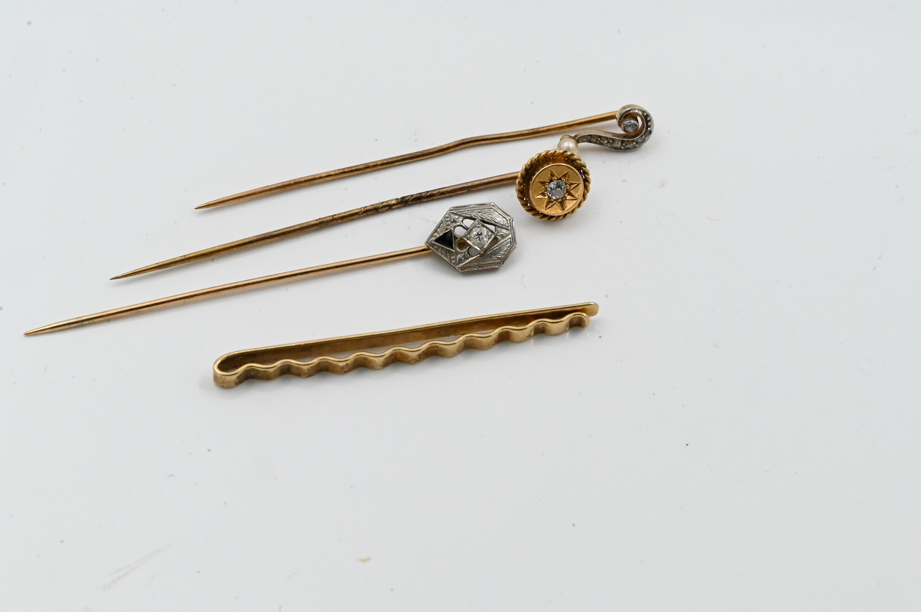 Lot 59: Four Piece Yellow Gold Stick Pins