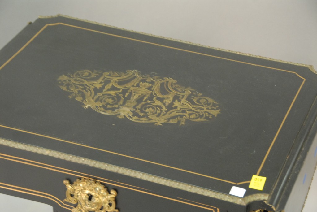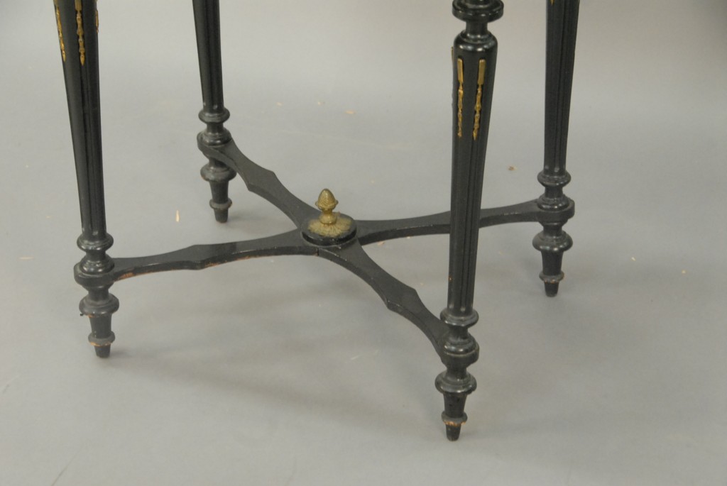 French table with drop leaves and drawer with brass inlay, ht. 28, wd. 35.