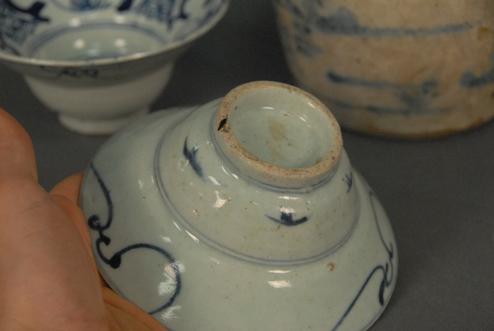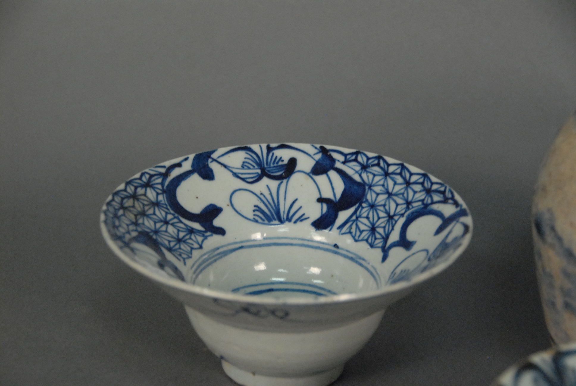 Lot 59: Group of four blue and white Oriental pieces to include a ginger jar ht. 5 1/2in. and three bowls ht. 3in. dia. 6in.