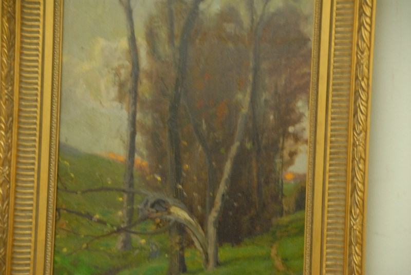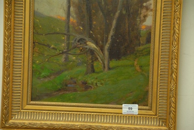 Lot 59: Gustave Adolph Wiegand 1870-1937 oil on board Trees in the Pasture signed lower right Gustave Wiegand, 17 x 12.