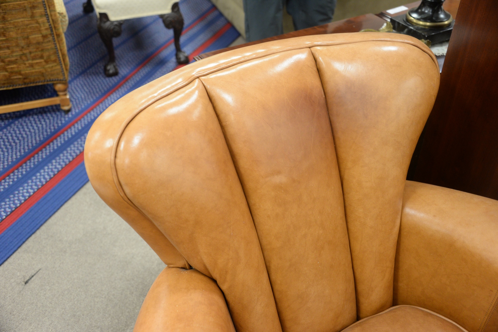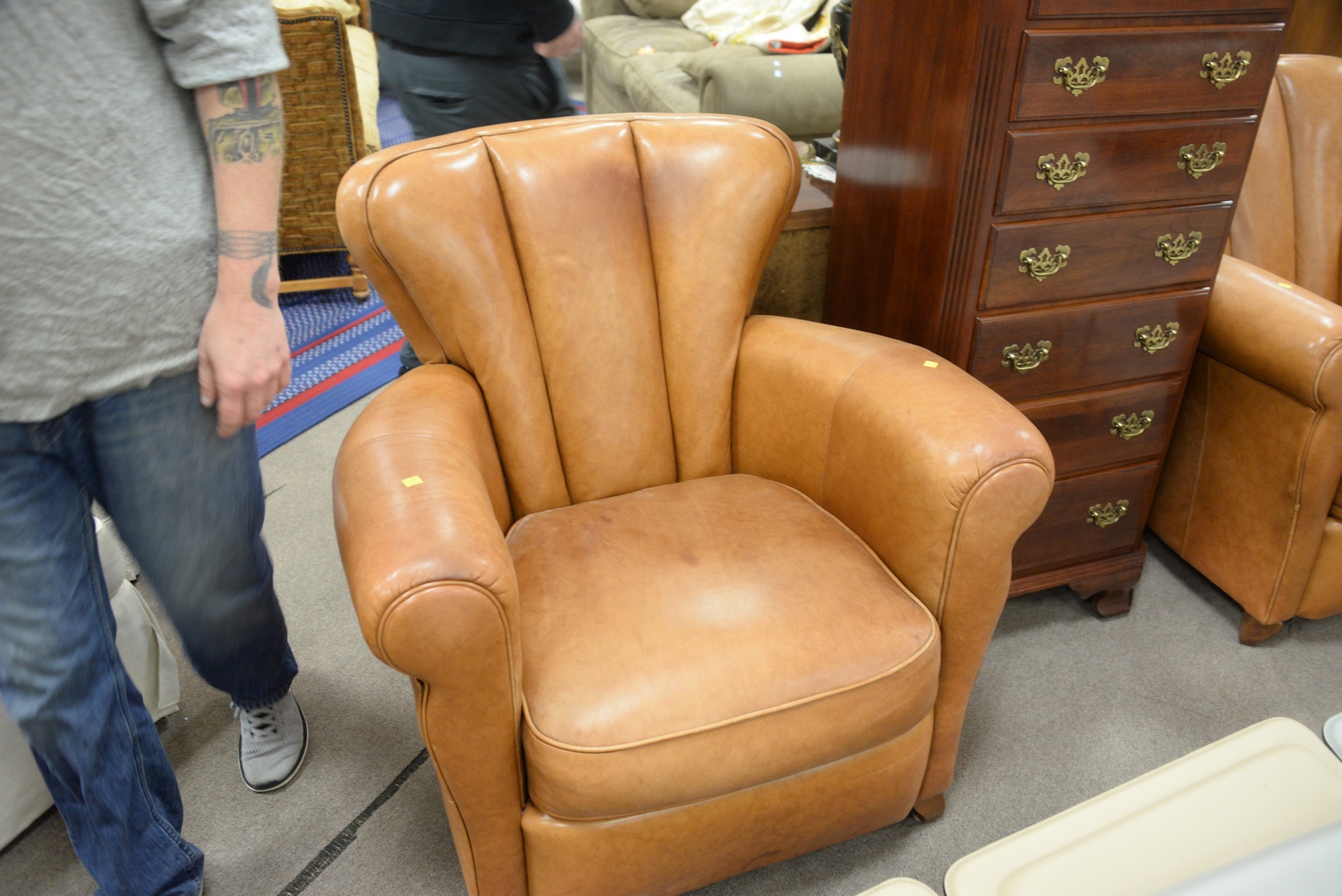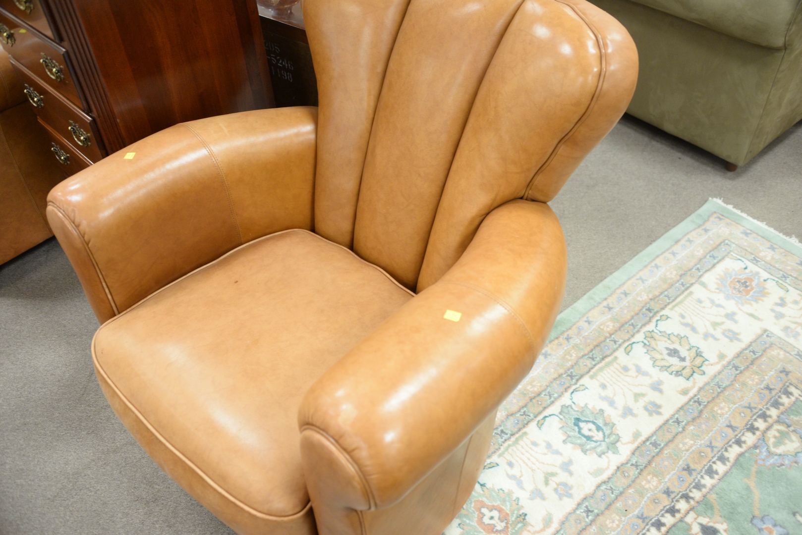Pair of Leather Upholstered Easy Chairs, height 36 inches, width 36 inches.