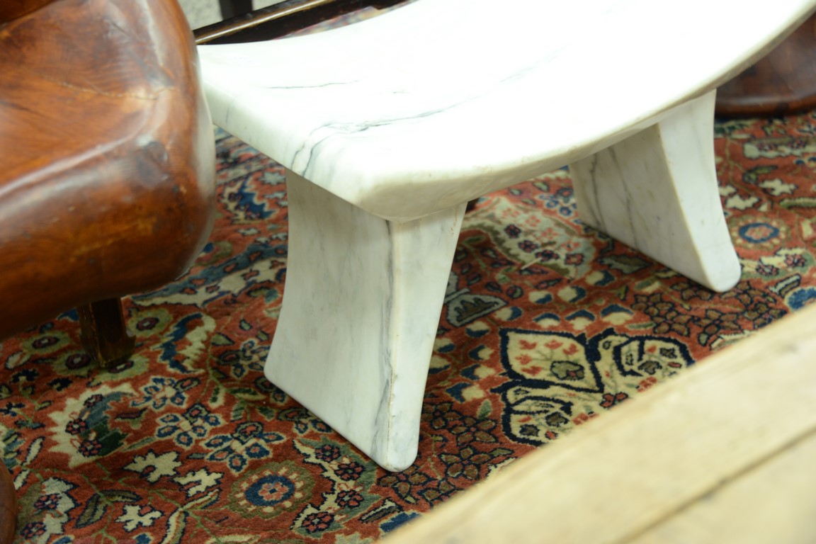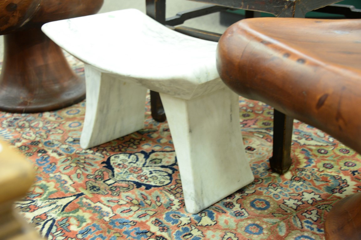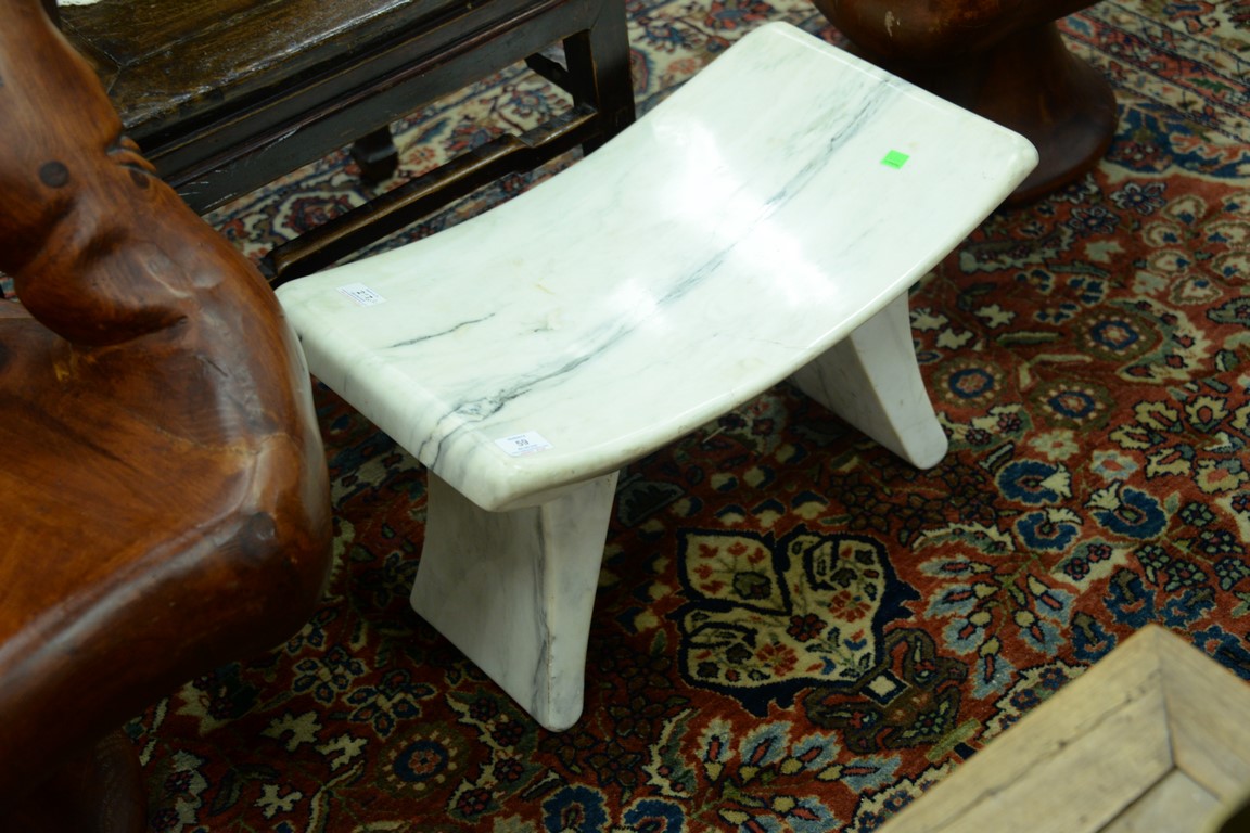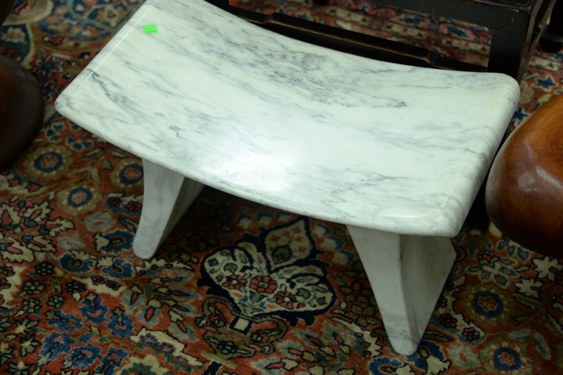 Lot 59: Pair of modern white marble small benches. height 14 1/2 inches, length 23 1/2 inches, width 13 1/2 inches