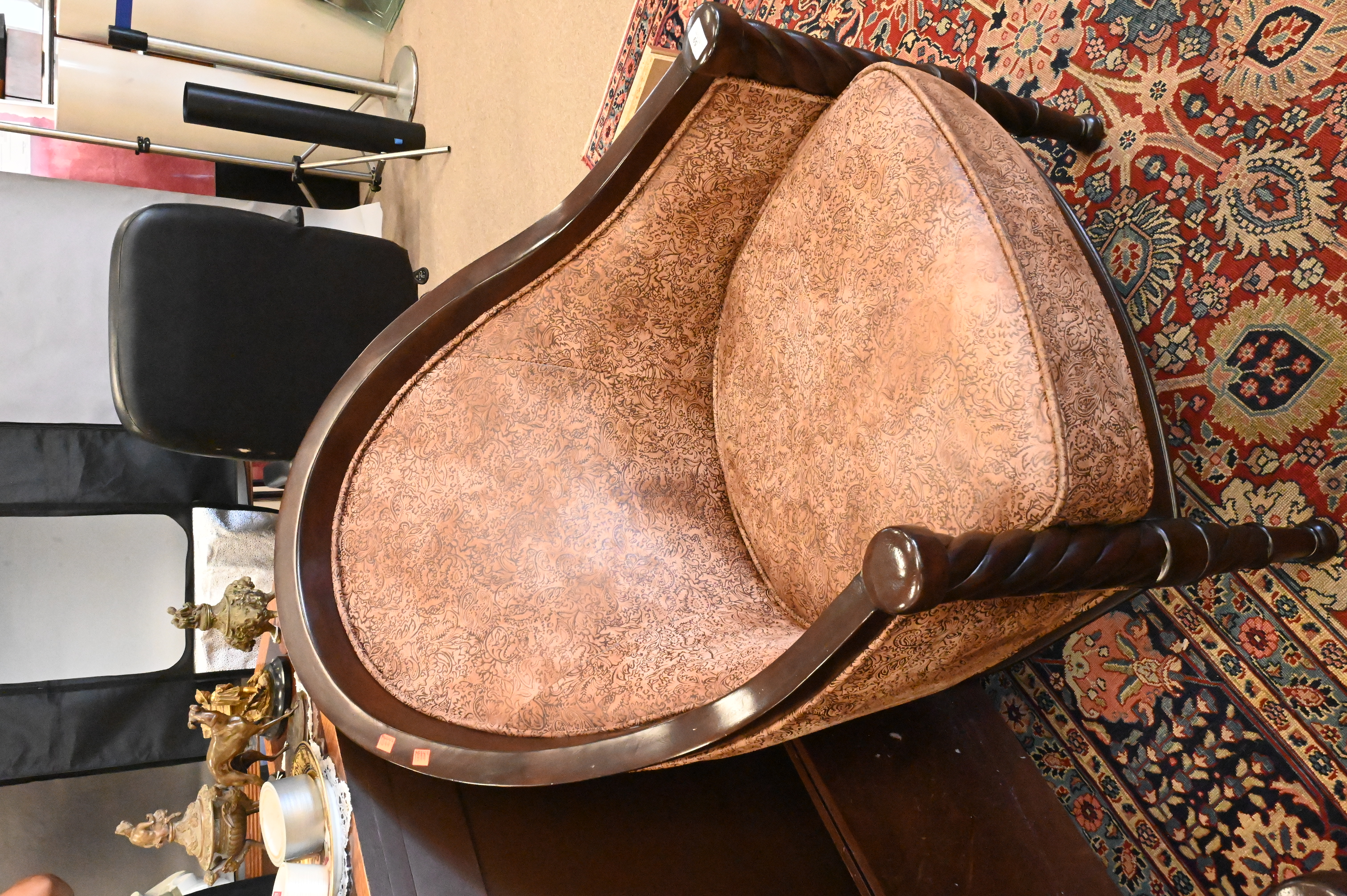 Lot 59: Pair of Upholstered Barrel Back Armchairs