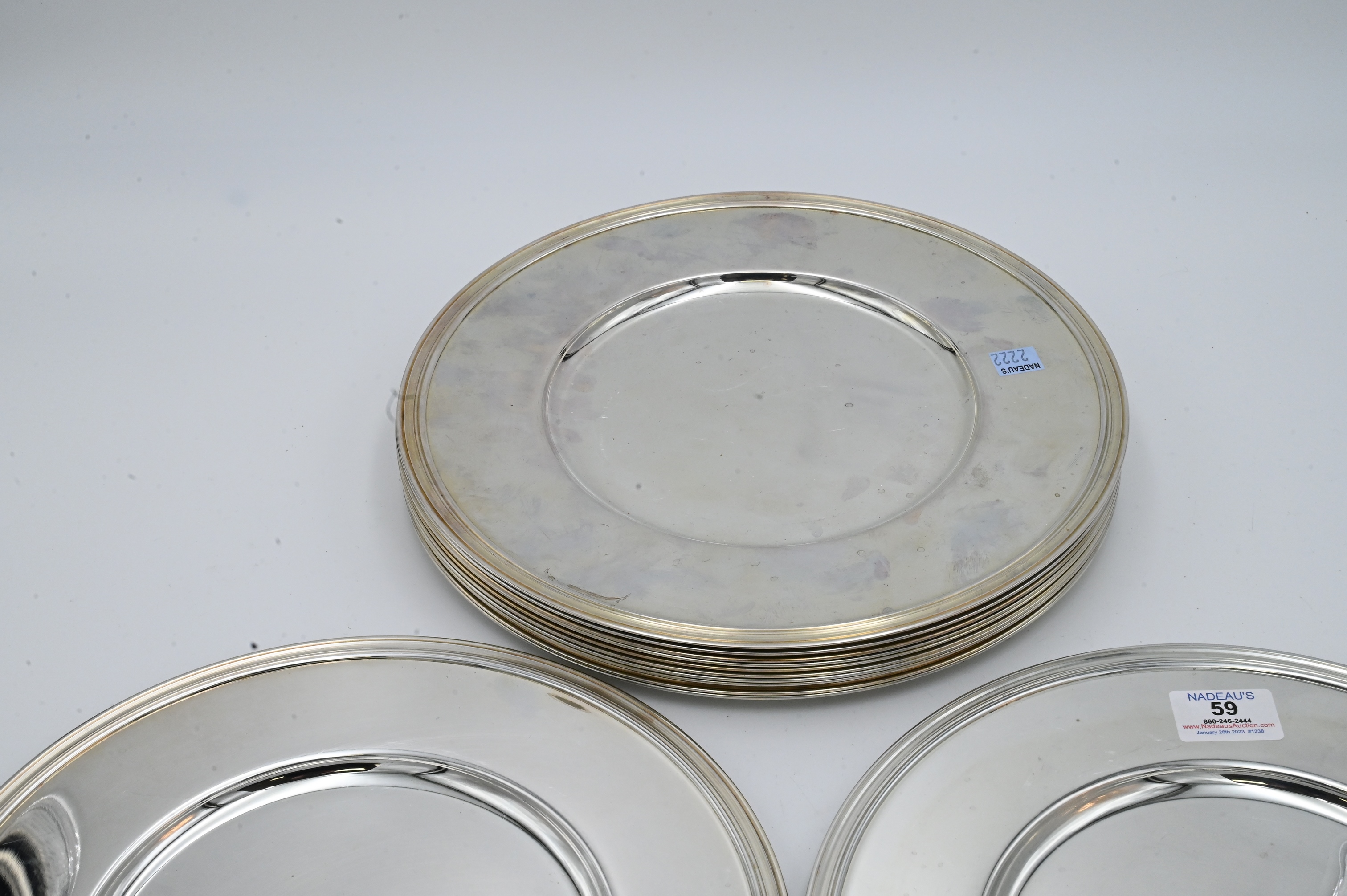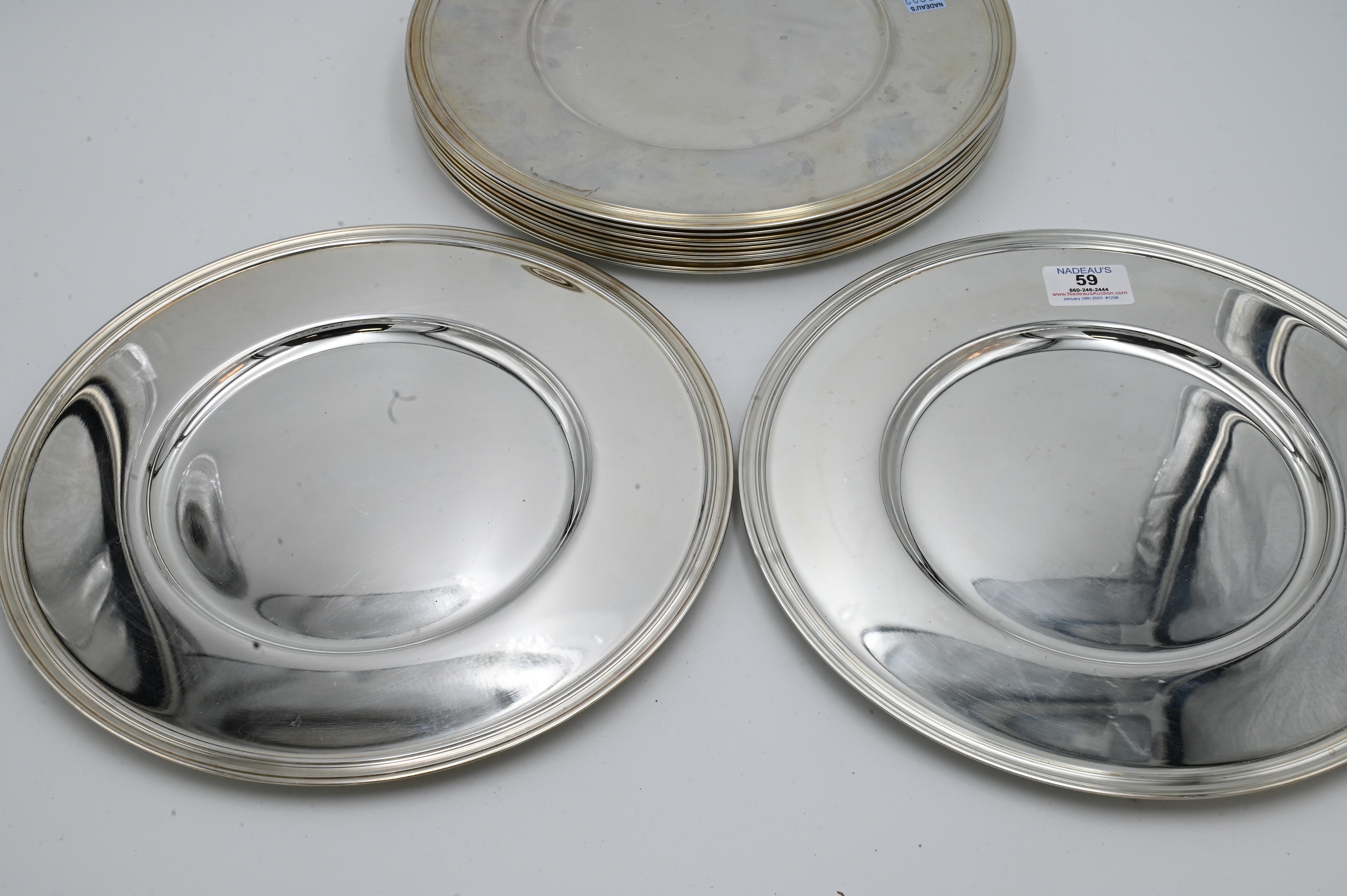 Set of 12 Christofle Service Plates, diameter 11 3/4 inches. Provenance: Estate of Dr. Vallo Benjamin E 57th St New York