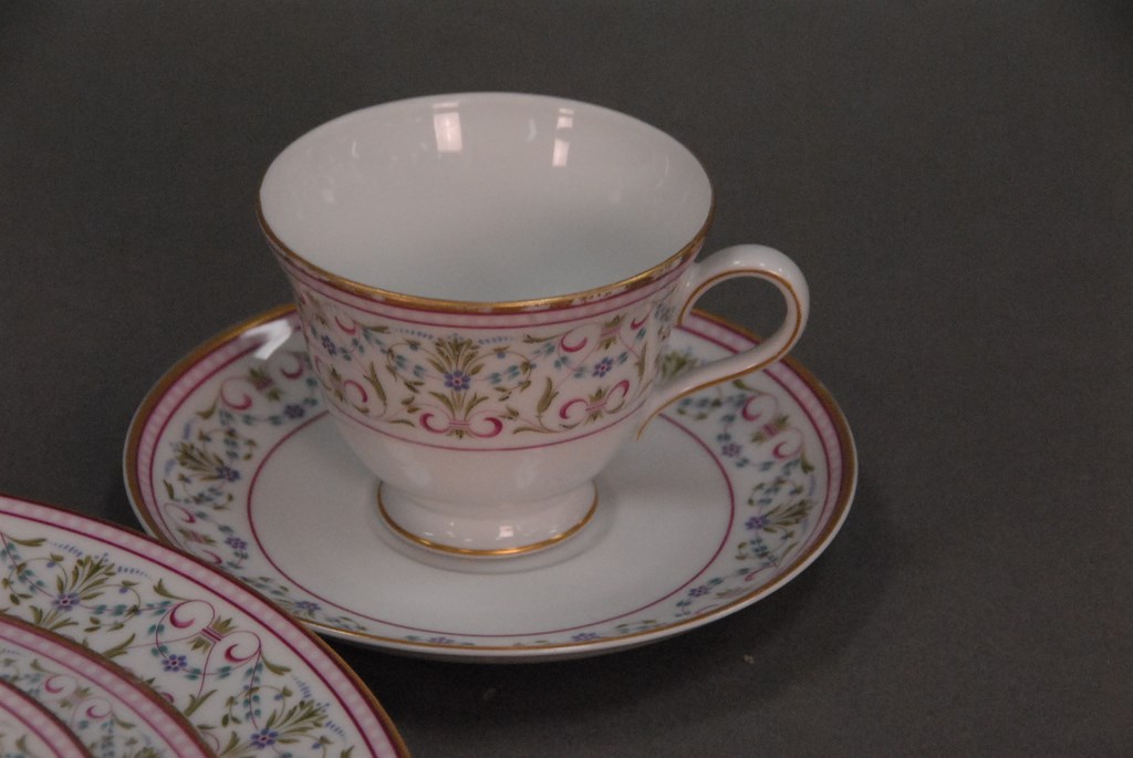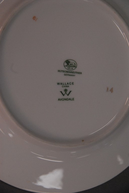 Lot 59: Set of Wallace Avondale German china dinnerware finial missing from sugar bowl.