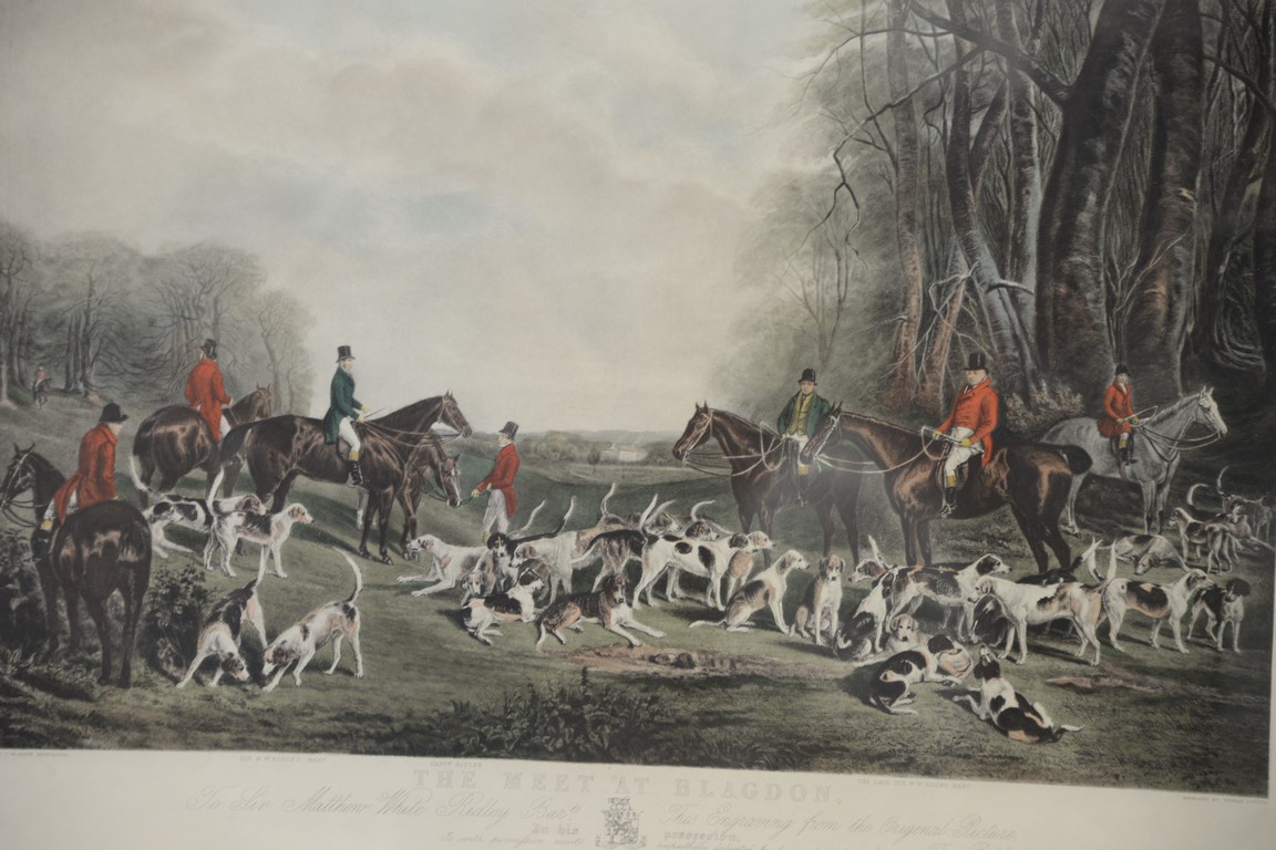 Lot 59: Three piece lot to include The Meet at Blagdon, an engraving after the painting by J.W. Snow, New Castle, engraved by Thomas Lurto…
