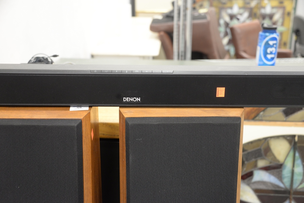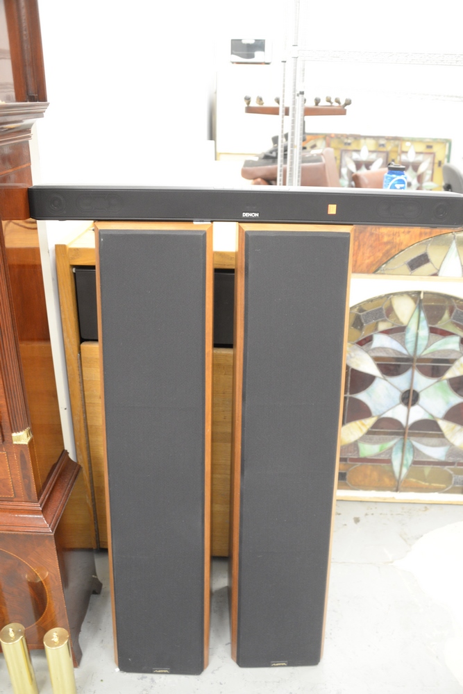 Lot 59: Three Piece Speaker Lot, to include a pair of Near tall speakers, model Near – 50M, along with a Denon sound bar, height 47 inches.
