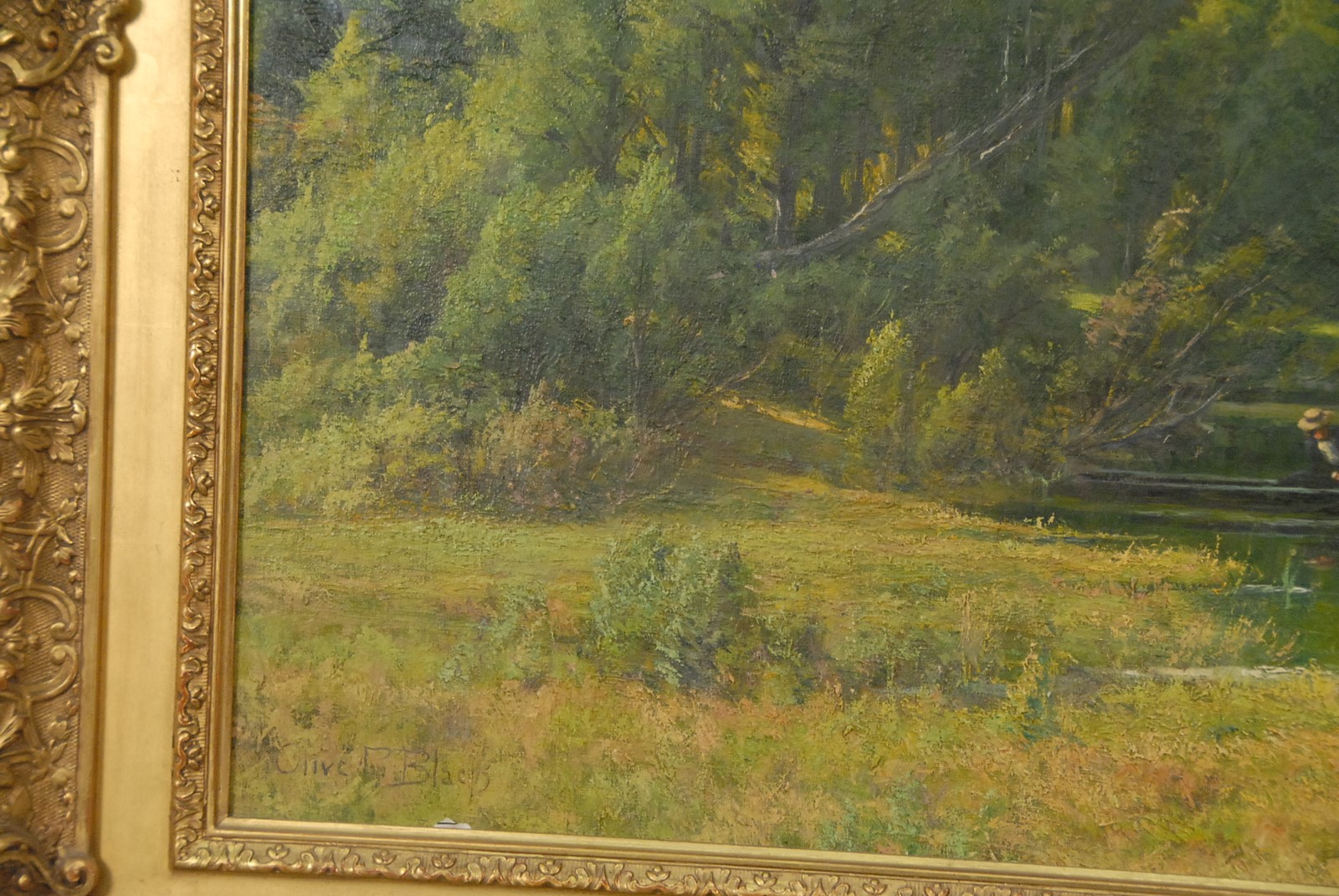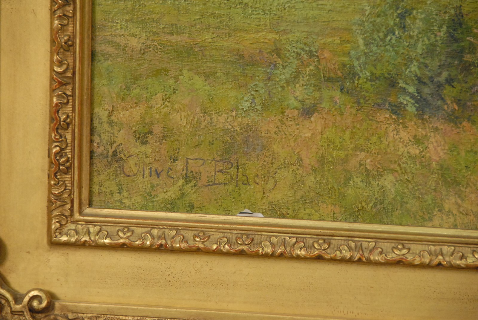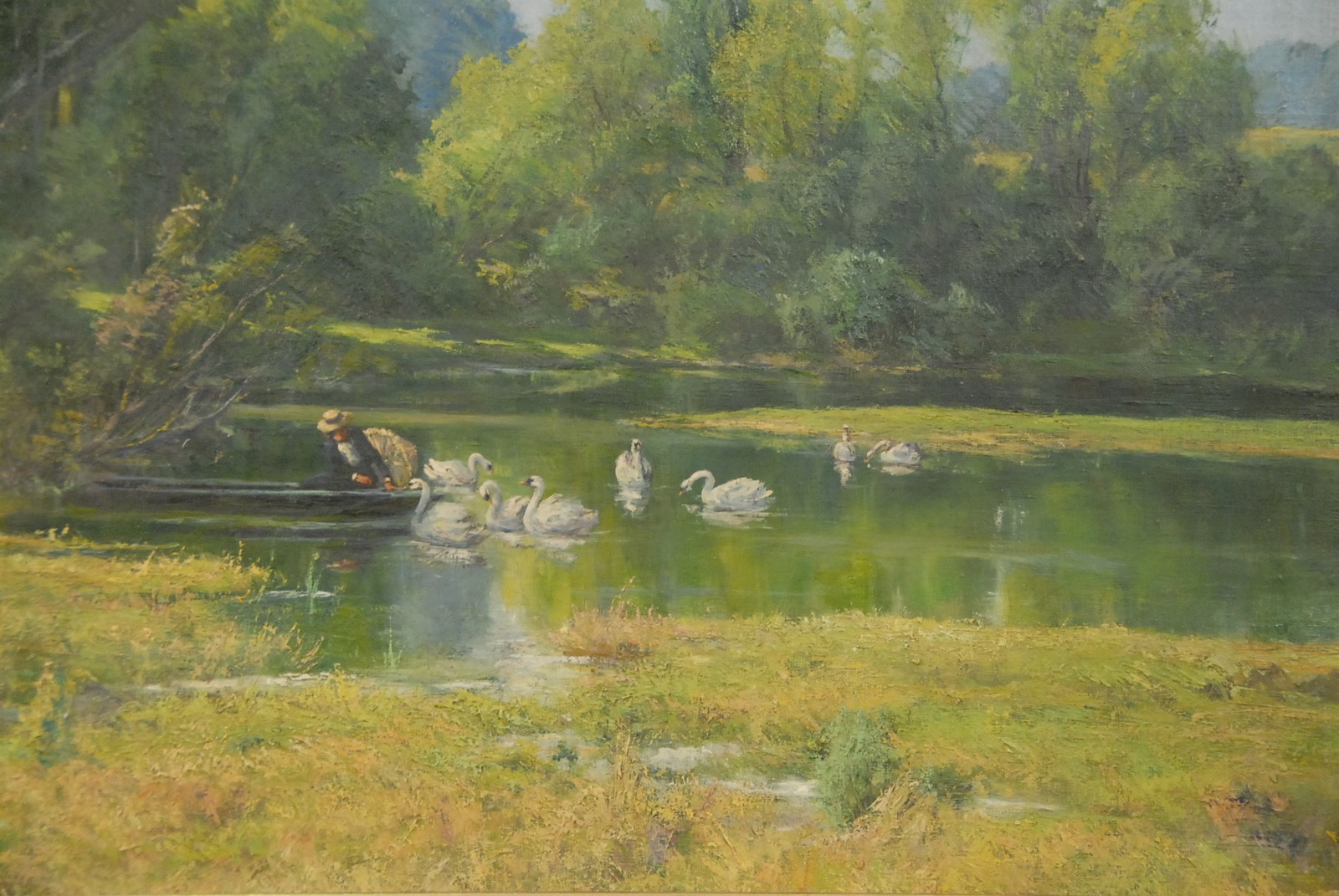 Lot 590: Olive Parker Black 1868-1948 SUMMER POND FEEDING THE SWANS oil on canvas signed lower left Olive P. Black 24 x 30