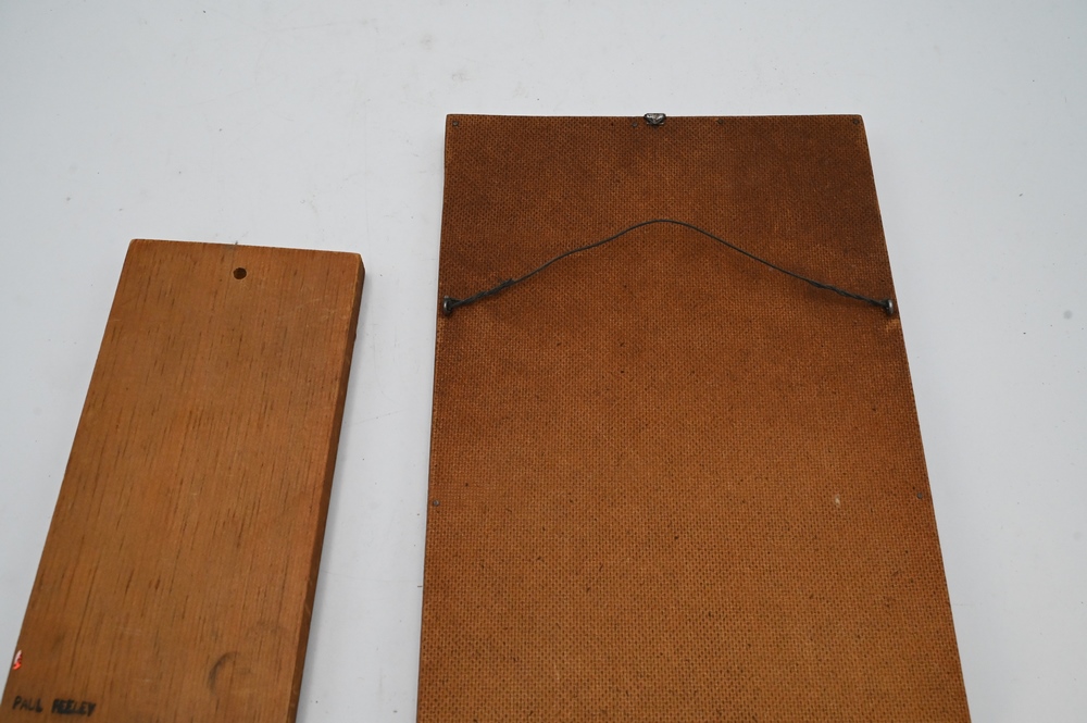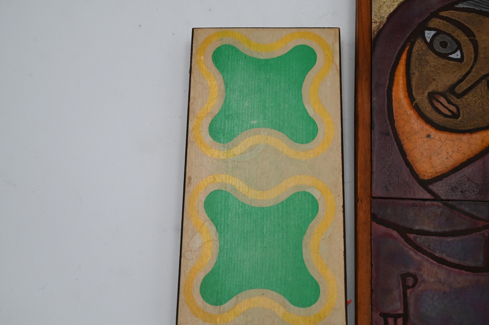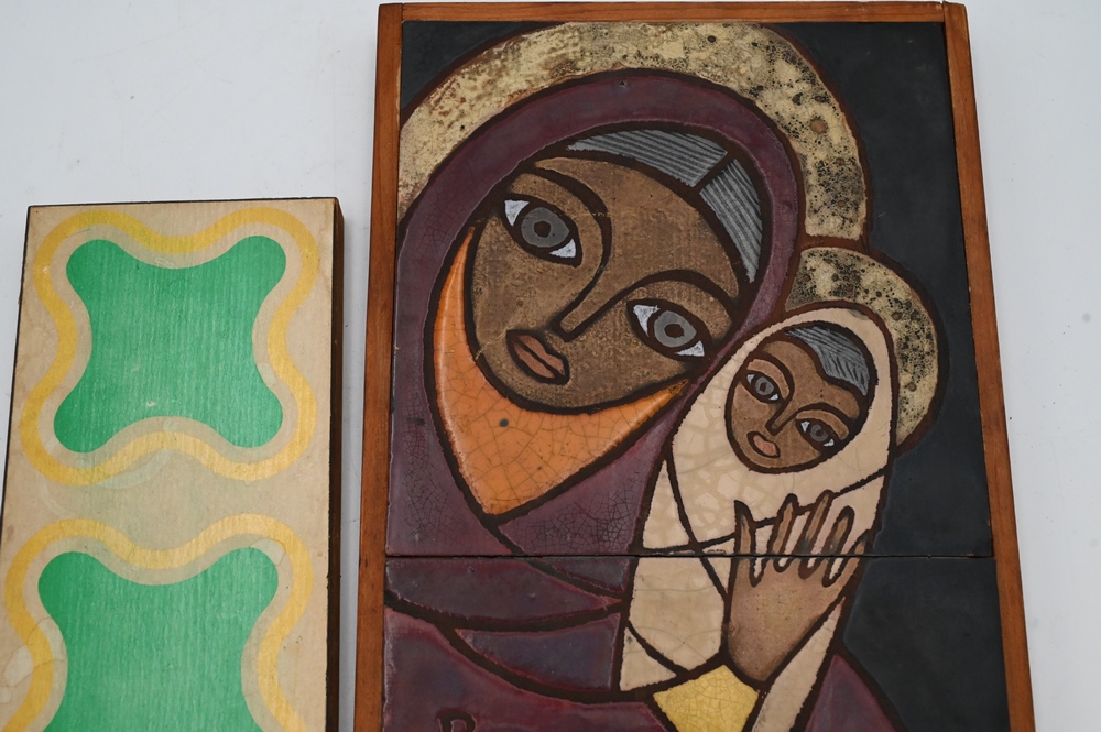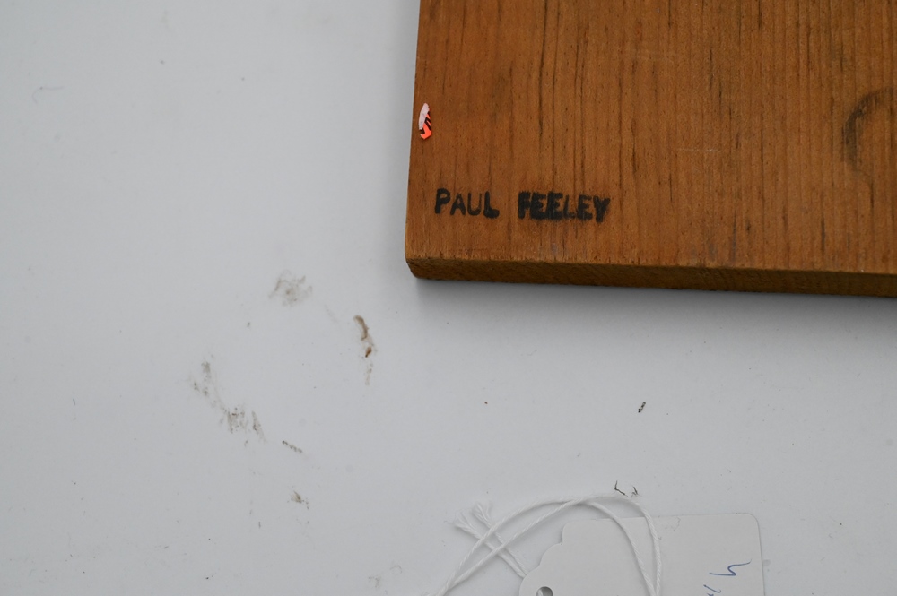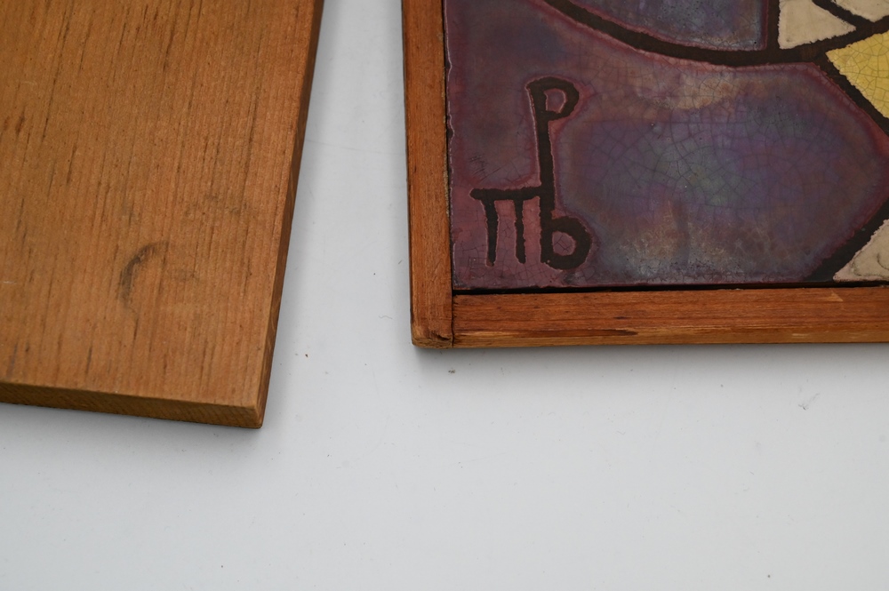 Two Piece Art Group, to include Paul Terence Feeley (1910-1966), lithograph mounted on wood, having Paul Feeley stamp on verso, 4.5″ x 8.75″; and a framed tile 12″ x 8″.
