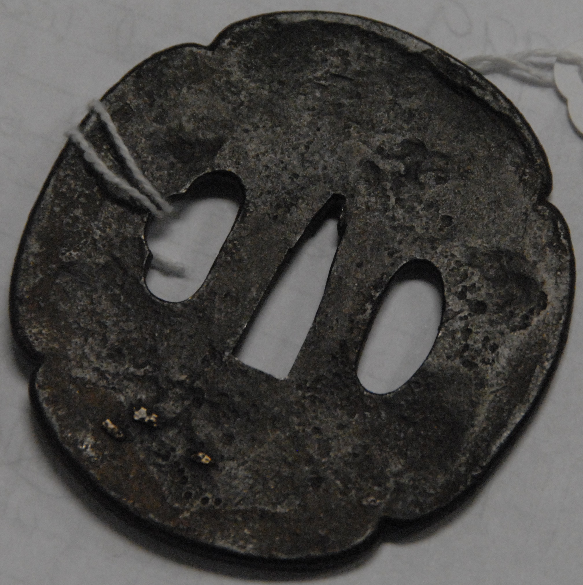 Early Japanese Tsuba, iron with rabbit and gold flowers, probably 17th – 18th century.