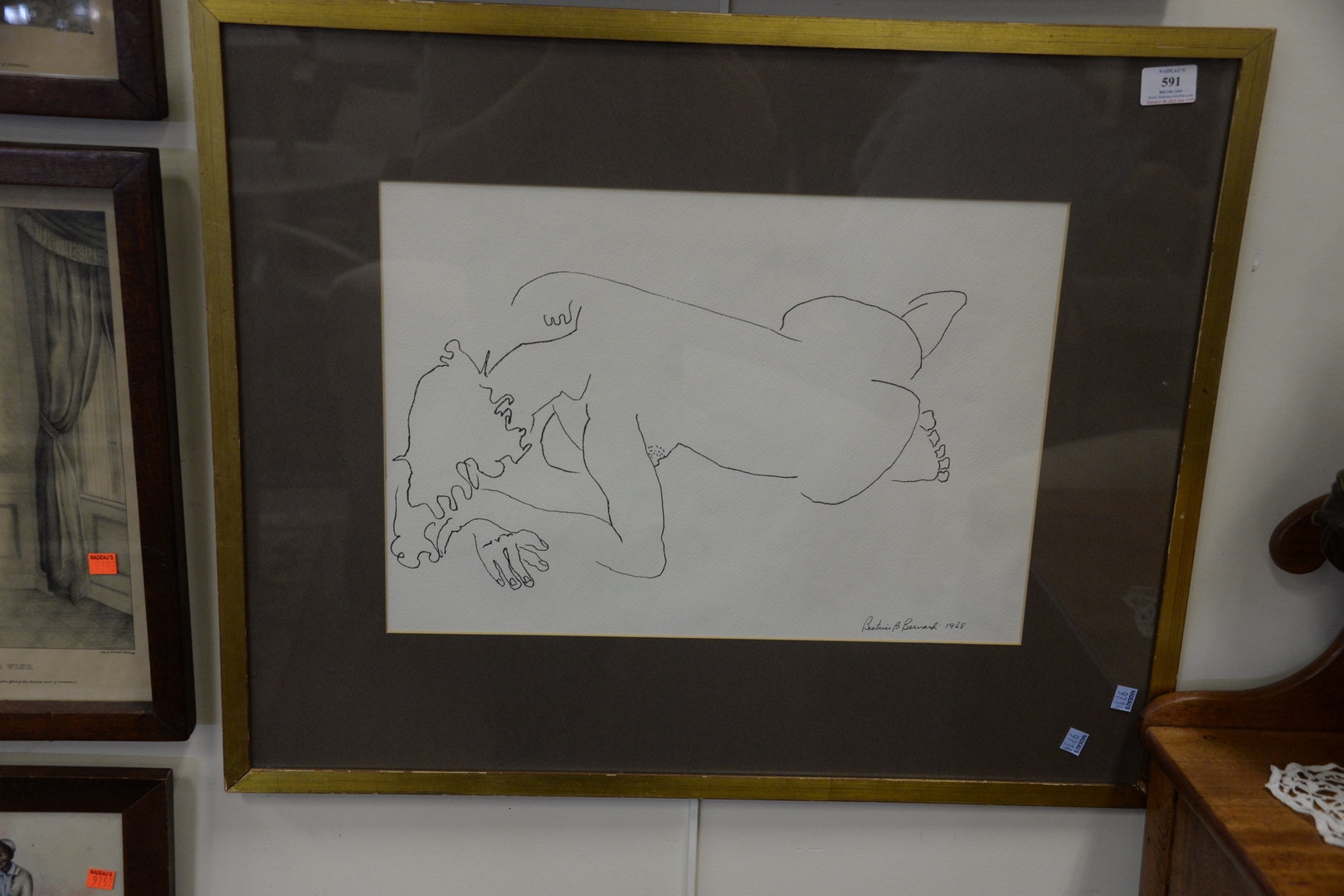 Lot 591: Beatrice Bernardi American, 1901 – 1991 female figure, 1968 ink on paper signed and dated lower right: Beatrice Bernardi 1968 13 3…