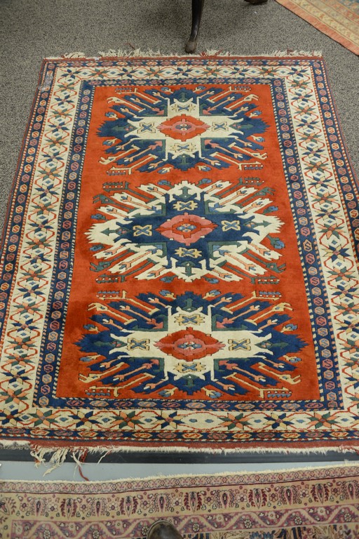 Kazak style Oriental throw rug, late 20th century. 4’8 x 6′
